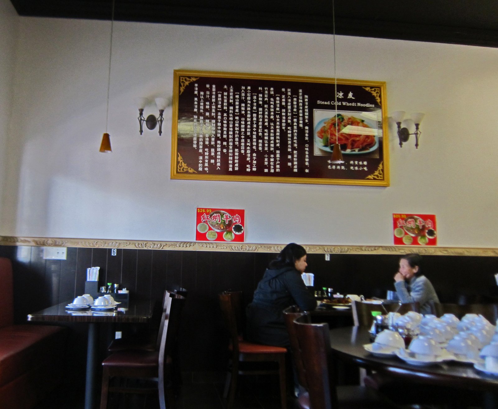 The restaurant is of course, located in a strip mall off of Valley Boulevard, but is hiddn from the street. Though once you enter the parking lot, you can't miss the Terracotta Soldiers guarding the front door. The dining area is clean, the walls lined with photos of various dishes, and the restaurant is a bit smaller than it looks from the outside. You probably would only need two Terracotta Warriors to guard the place.