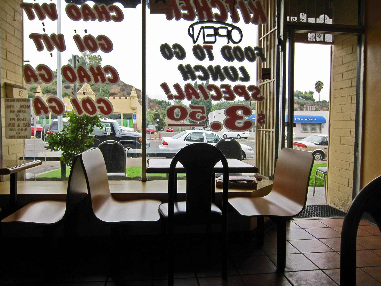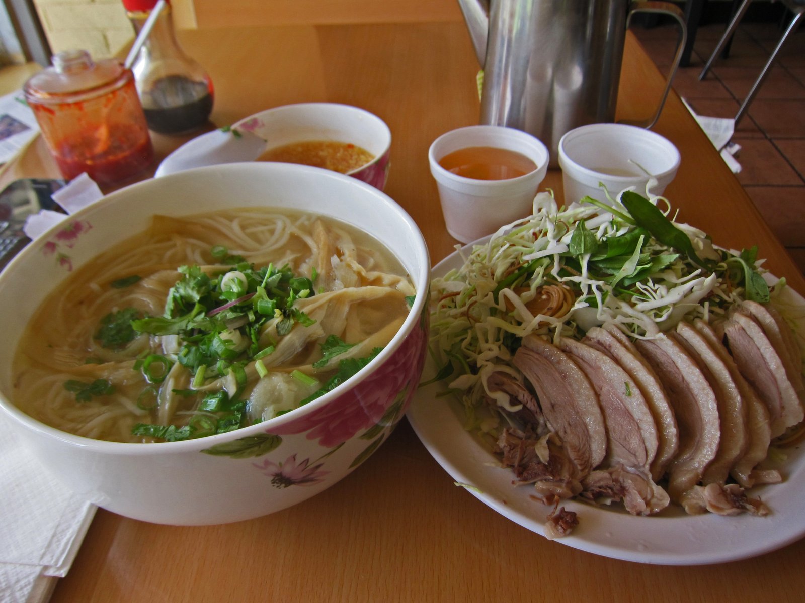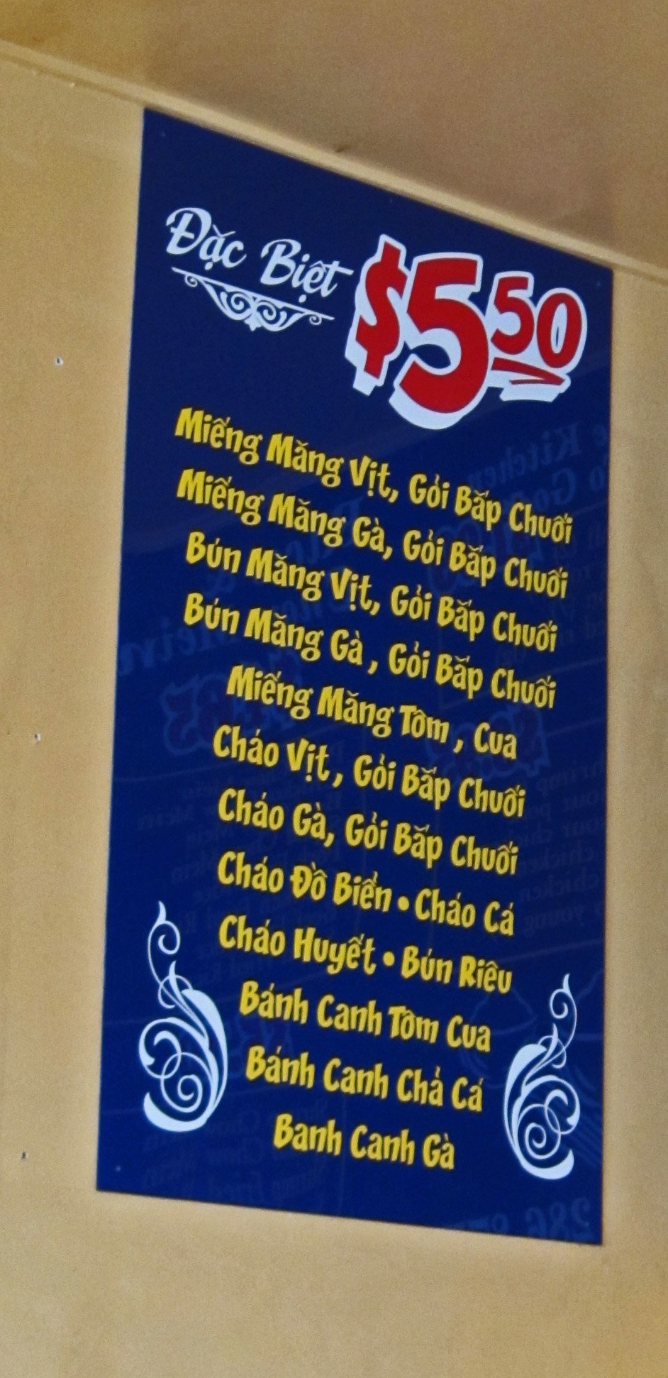 To get the most out of this restaurant, you need to peel your eyes away from the huge plastic menu on the wall that faces the street. Look to your left and you'll see the heart and soul of the menu. While I've had other dishes here, it's the Bun Mang Vit that keep me coming back. There have been times when I've had to stand on the bench and point to the third line down on the menu to make sure I'd get my order right. The prices aren't bad either…..