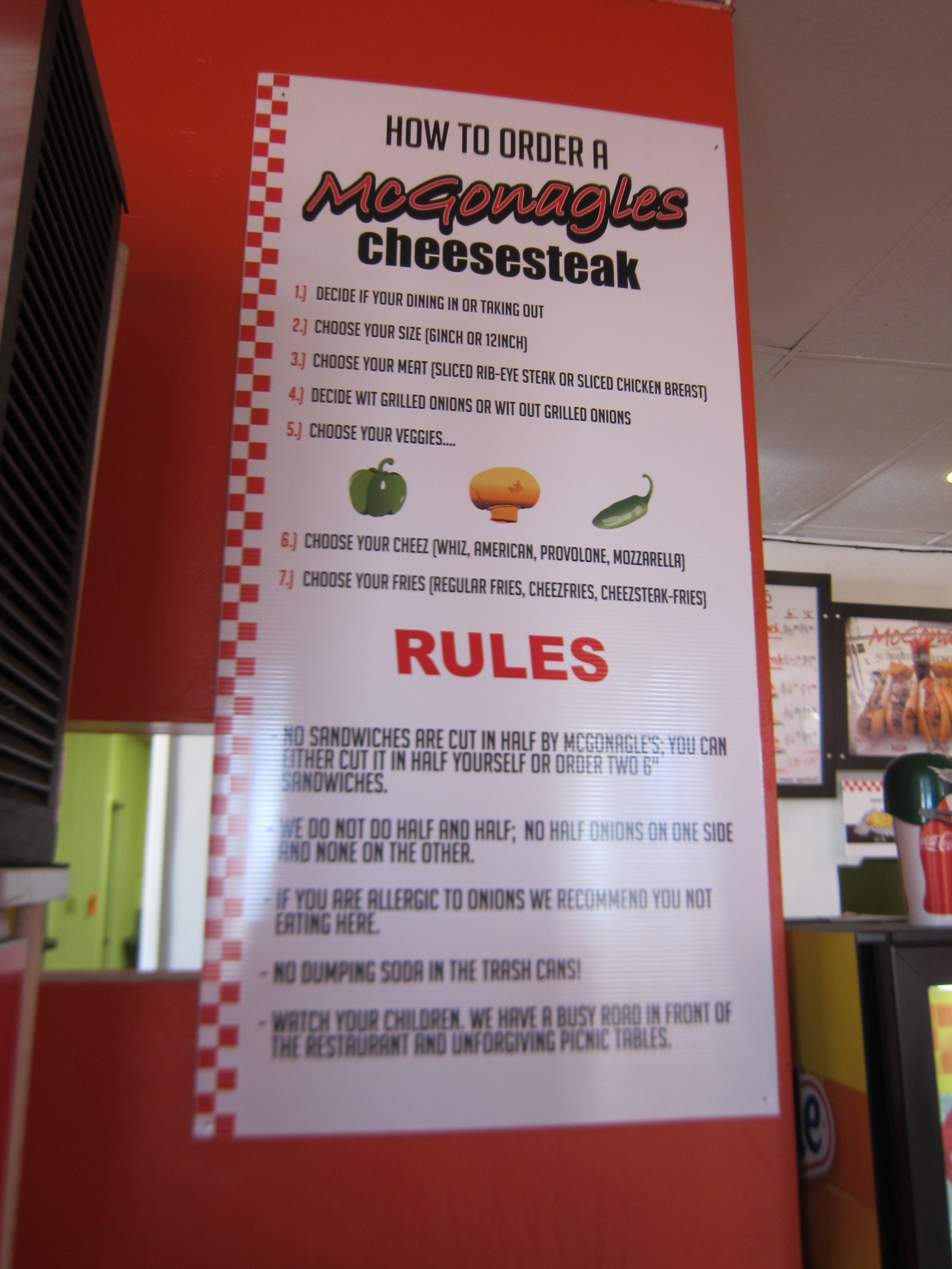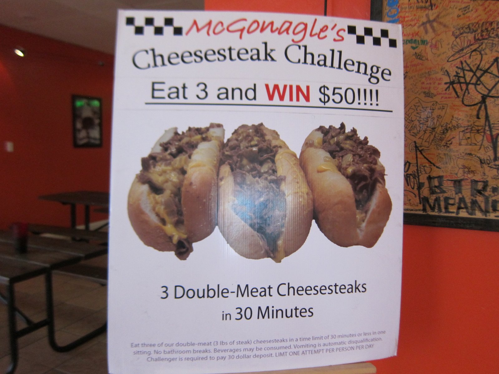 I really didn't enjoy this too much; the bread was ice cold, the meat bland, dry, and tough……'nuff said. I'm glad I didn't get this with whiz….well maybe not, it would have covered some of this up. While I ate the sandwich I read the "eat three sandwiches and win" sign……..seems like everyone is trying to cash in on the Man versus whatever thing. I just can't imagine trying to eat three double meat cheesesteaks from here. But perhaps I just visited on a bad day…….perhaps.