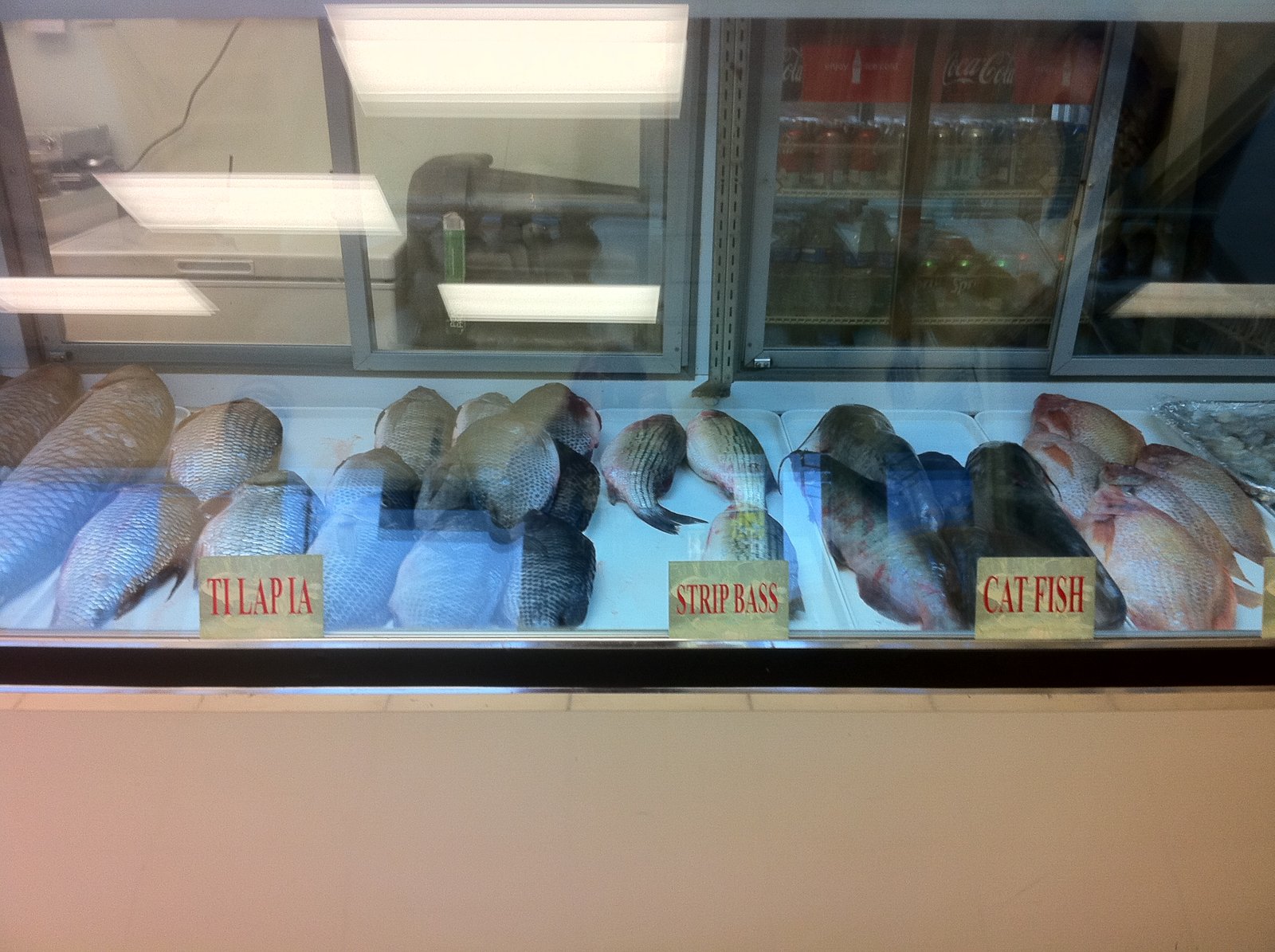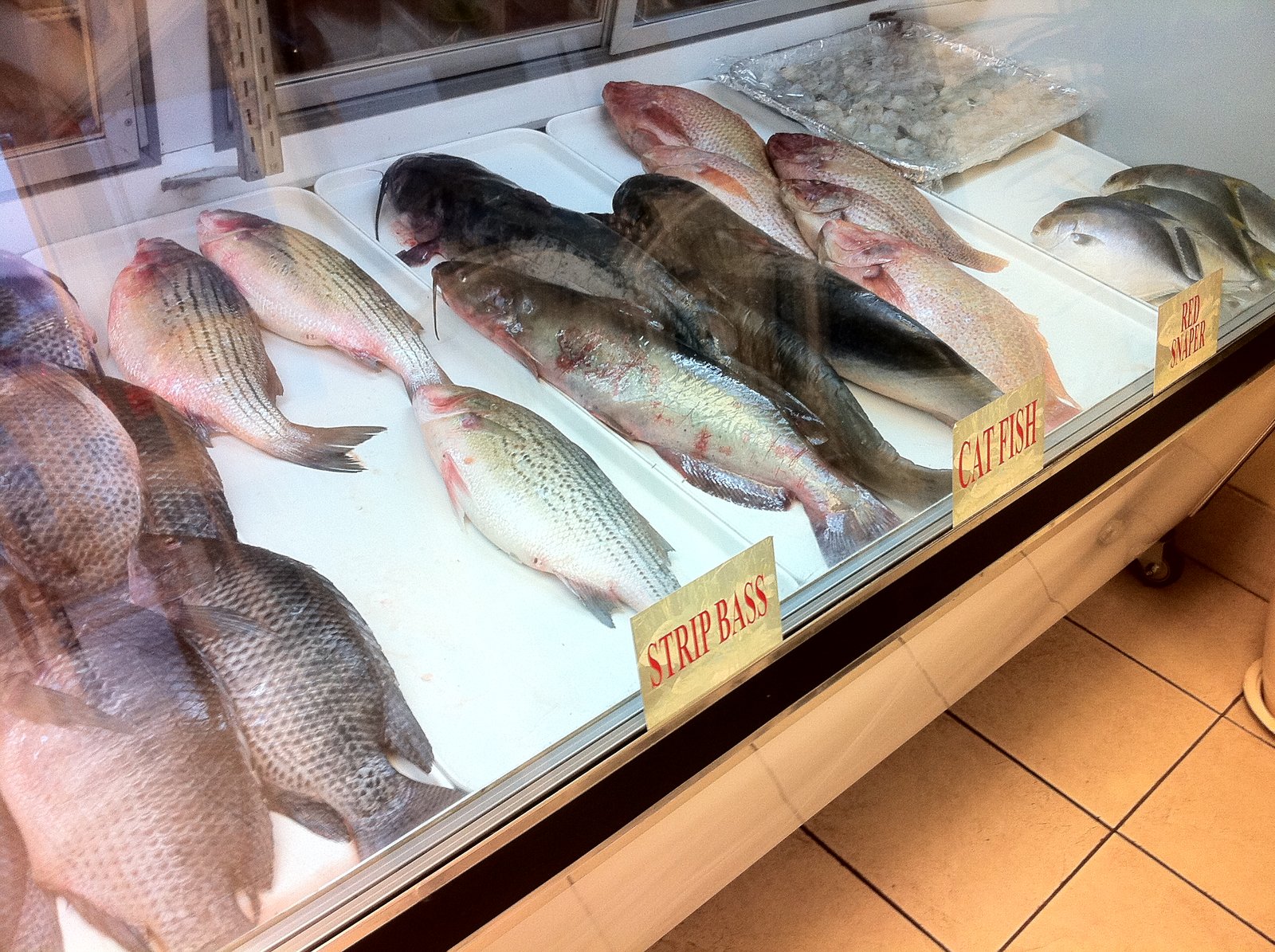 Just so you know, the live catfish are $8.99/lb, the ones in the counter are $5.99/lb. The live tilapia are also $8.99/lb and the ones in the counter are $6.99/lb. Strip bass are $8.99/lb, Grass Carp are $5.99/lb and the red snapper are $7.99/lb.