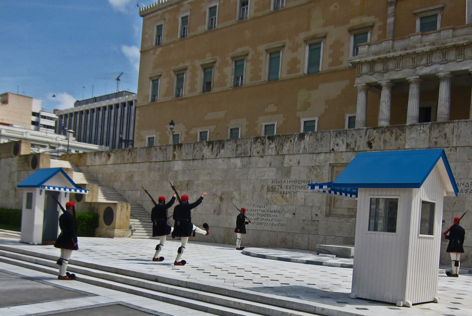 After lunch, we walked on over to Syntagma Square. The Missus really wanted me to see something. She led me to the gathering of tourists in front of the Parliament Building.