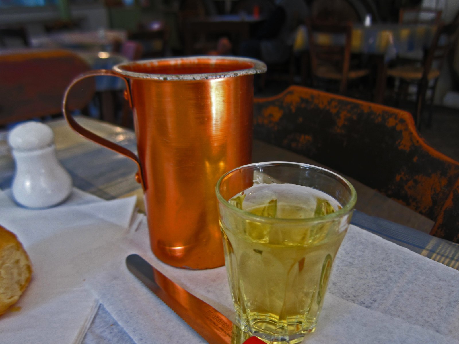 In the corner was an older gentleman moving at a steady pace preparing the various offerings for the day. This basement taverna has no menu, the two men working that day didn't speak any English. They smiled and invited the Missus over to the pots so She could choose our lunch for us.