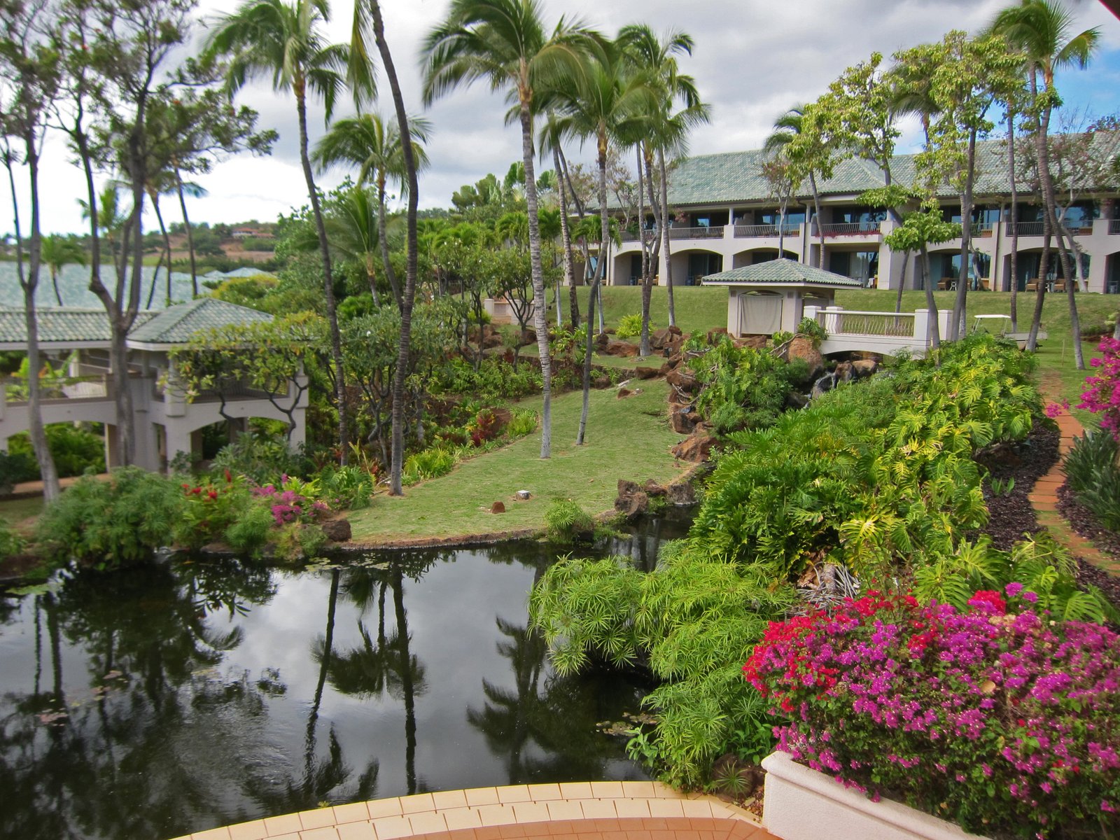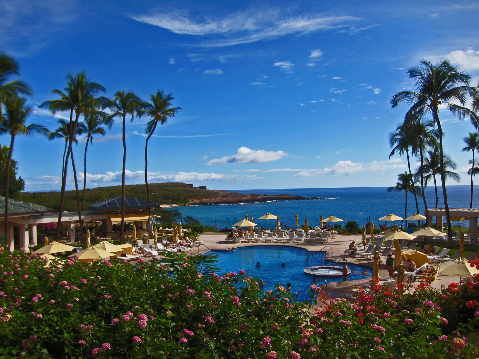 Here's a view of the pool area and Hulopo'e Bay below…….