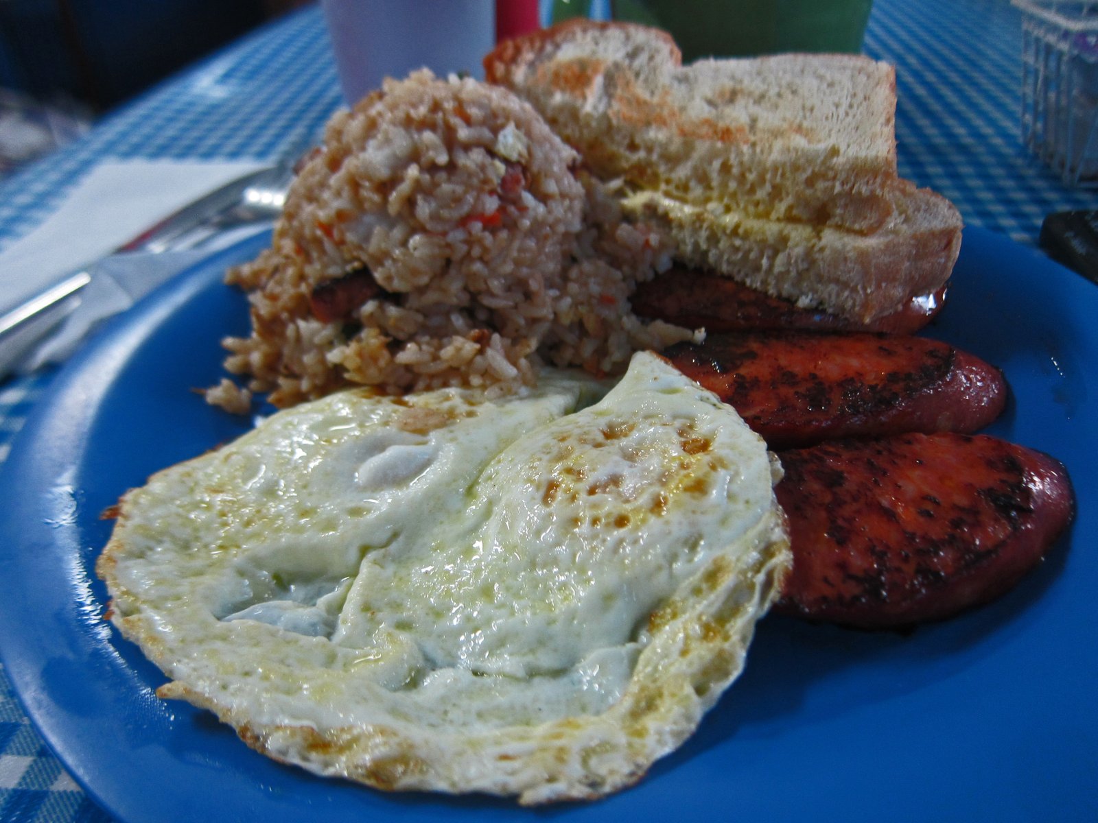 My breakfast was not quite as good as what I had the previous morning. The sausage and eggs were good, but the fried rice was a bit too mushy for me and the toast was loaded with margarine.