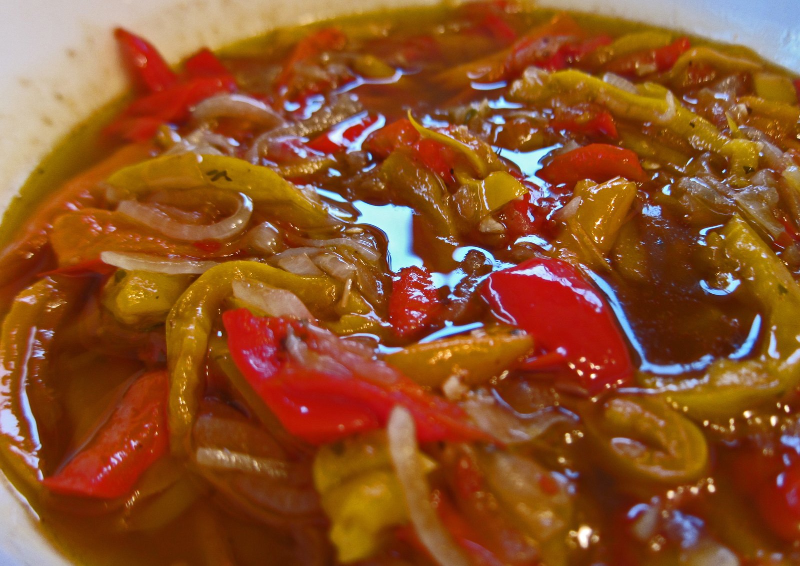 As always I did ad a couple of things to the recipe, in this case some garlic and dried oregano. Since the amount of peppers I had was closer to the three pound mark, I ended up using 1/2 of olive oil. The anchovies in the recipe add a deep savory and salty background flavor and I loved the addition of balsamic vinegar instead of the usual white wine or red wine vinegar.