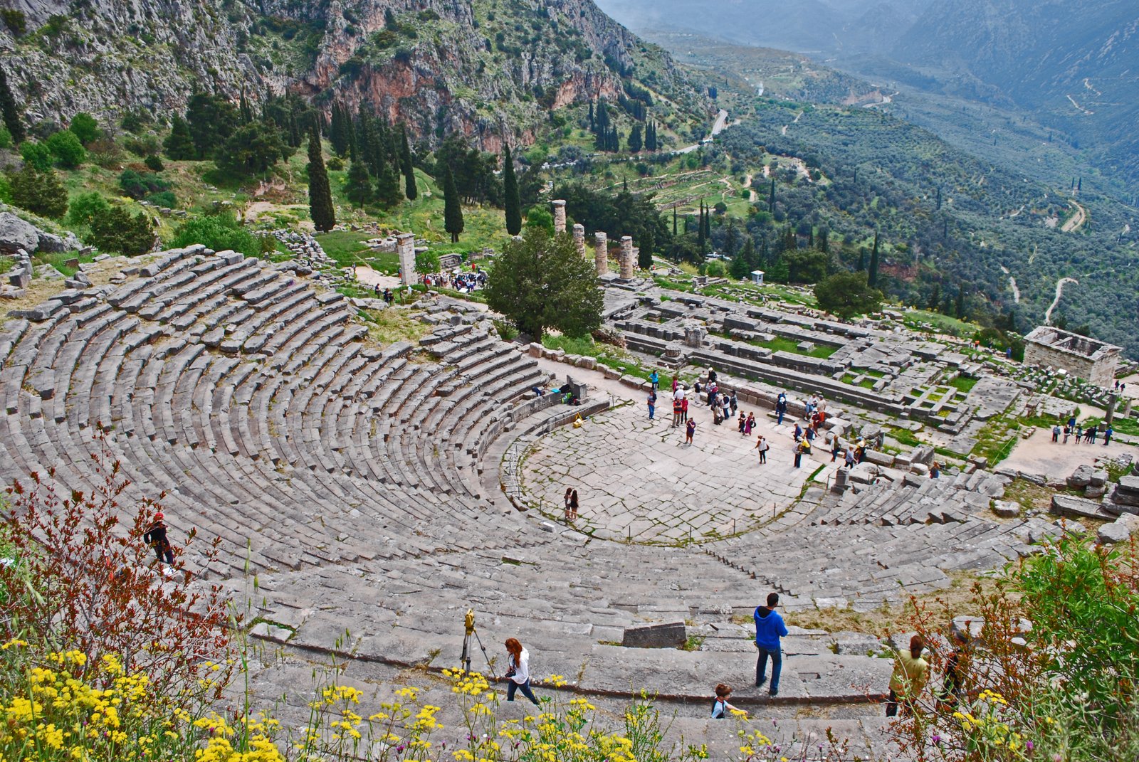 The Theatre of Delphi, while not as grand as the one at Ephesus, is still impressive. It could hold up to 5,000 people in its 36 rows and provides a wonderful view.