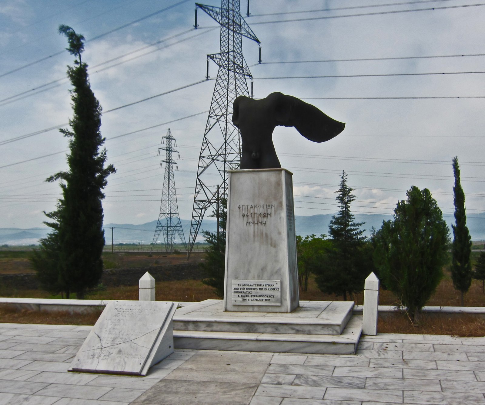 We made our way down from the mountains and onward toward the plains of Thessaly, man the ride was getting me sleepy. Eventually we stopped on what seemed like a parking lot right off the main road. Right next to the parking lot was this monument: