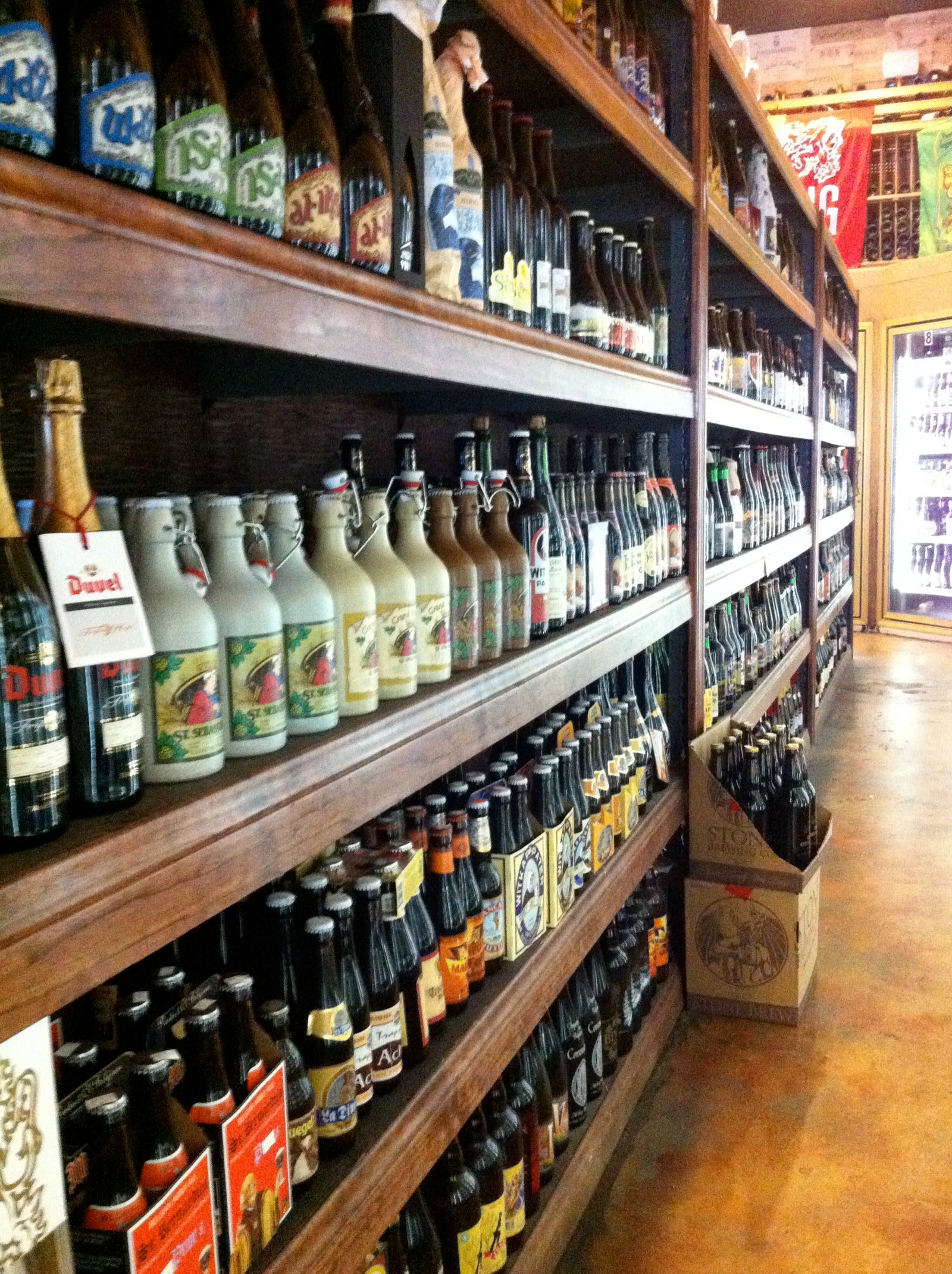 Walk in and the selection of non-refrigerated beers is extensive. Opposite these shelves and around the back of the store is a wall of refrigerators.
