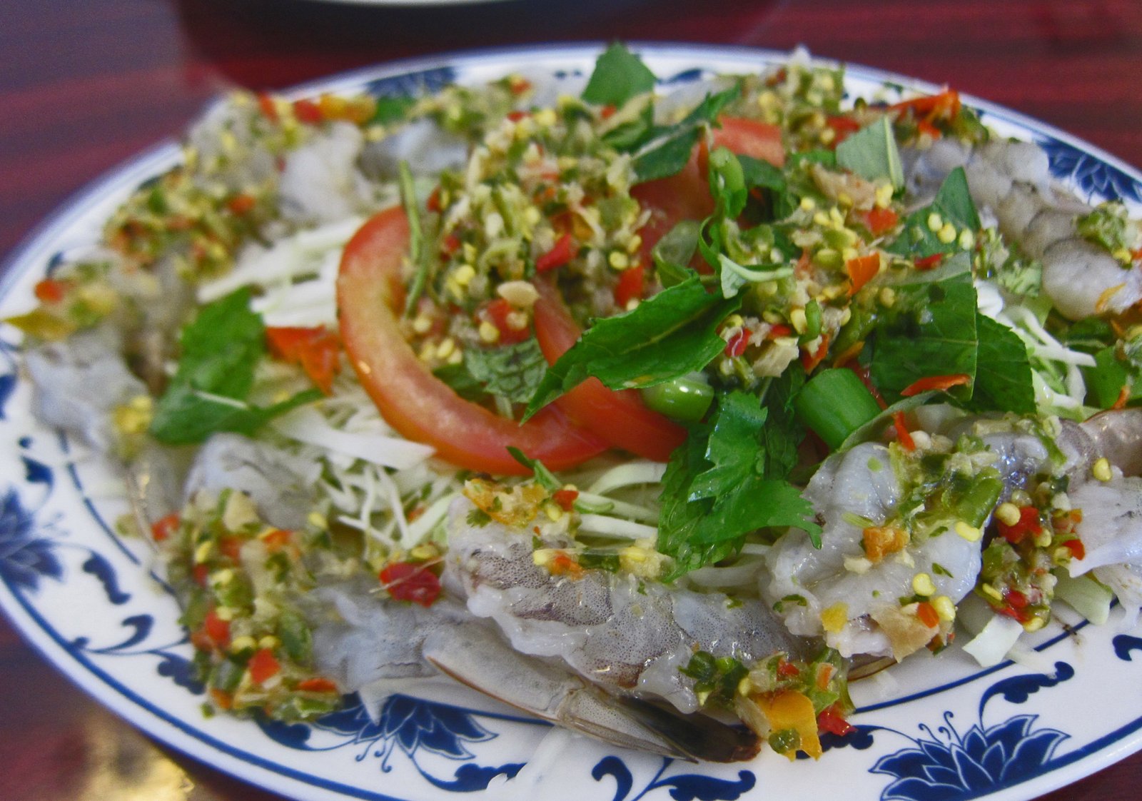 There were two dishes we'd driven up for; the first was the Raw Shrimp Salad ($7.99):