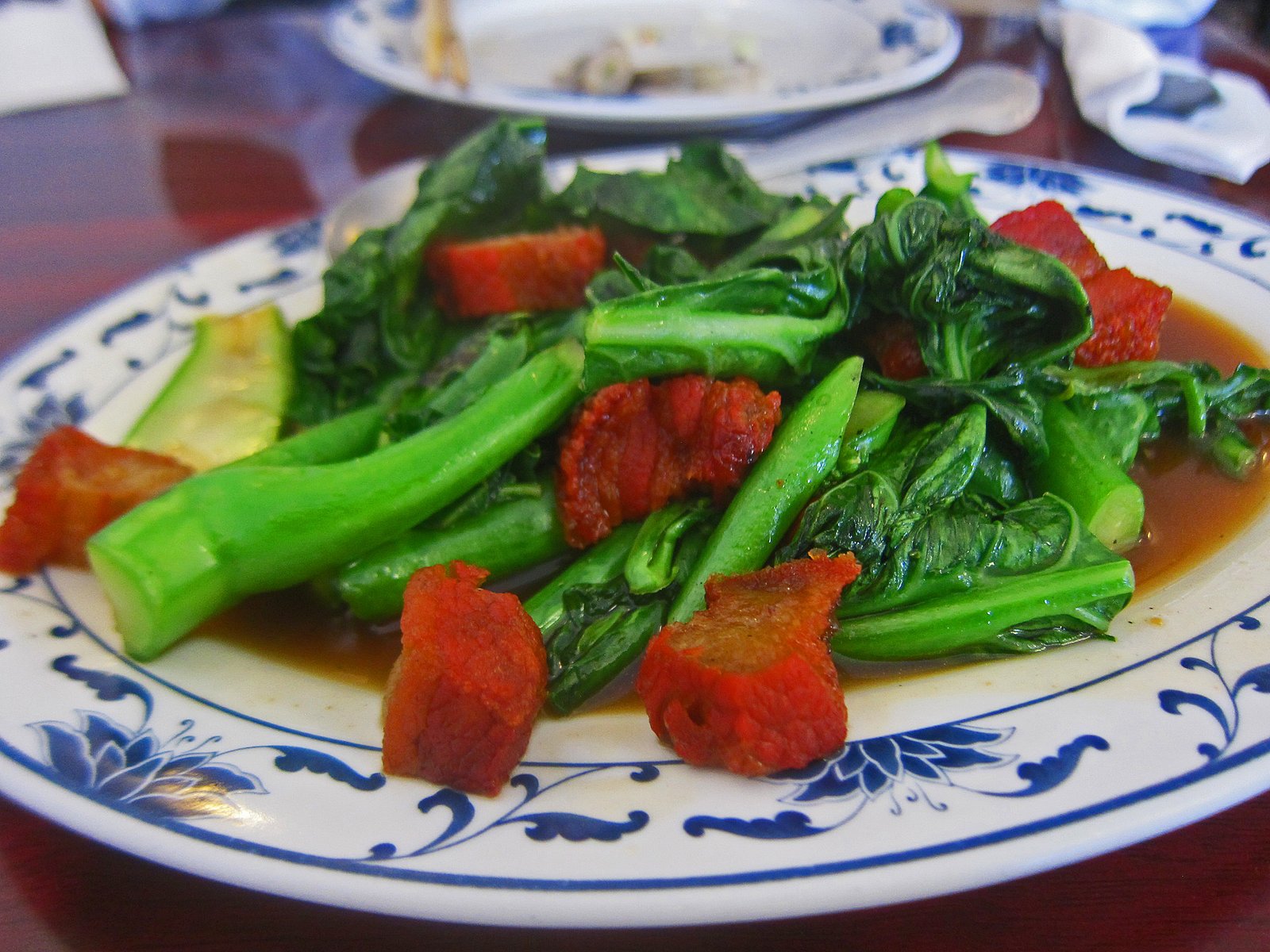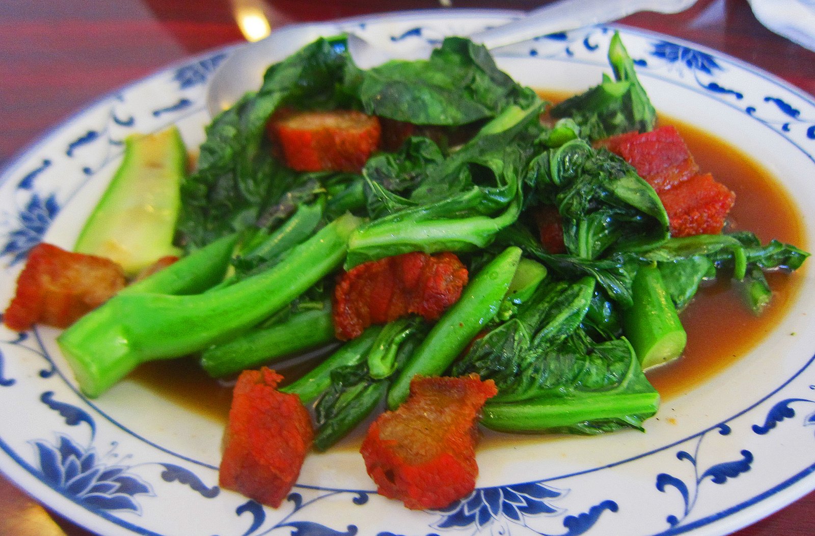 I know some folks don't enjoy the chewy texture of roasted/braised, then deep fried pork belly, but I kind of like it. The pork had decent flavor, the Gailan (Chinese broccoli) was fresh. The sauce, which tasted like Kecap Manis, or some type of sweet soy, along with some oyster sauce, and perhaps some bean paste(?) edged on the salty end of the scale. It was fine when eating at the restaurant….in fact, we ordered some sticky rice with the sole purpose of soaking all the sauce up. The leftovers tended to be much too salty….note to self: next time finish it all!