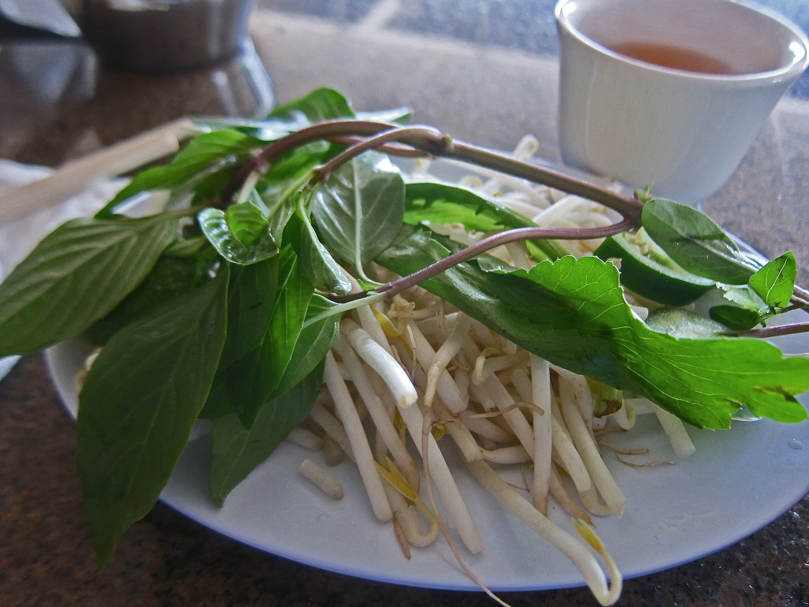 It looked really light, like bad dishwater, and man was it salty. The noodles were adequate, the protein mediocre, with just one tiny little dime sized piece of tendon. Meanwhile, I'm still waiting for my basil….which finally made it's appearance about five minutes later. In retrospect I should have taken a photo. It was a brand new("different") plate which I guess they switched out. Still no Ngo Gai, blackened basil, and this time the bean sprouts were brown….taught me for asking for something here. Perhaps all their energy has gone into the second location in Chula Vista? Or was it a bad day? I dunno……