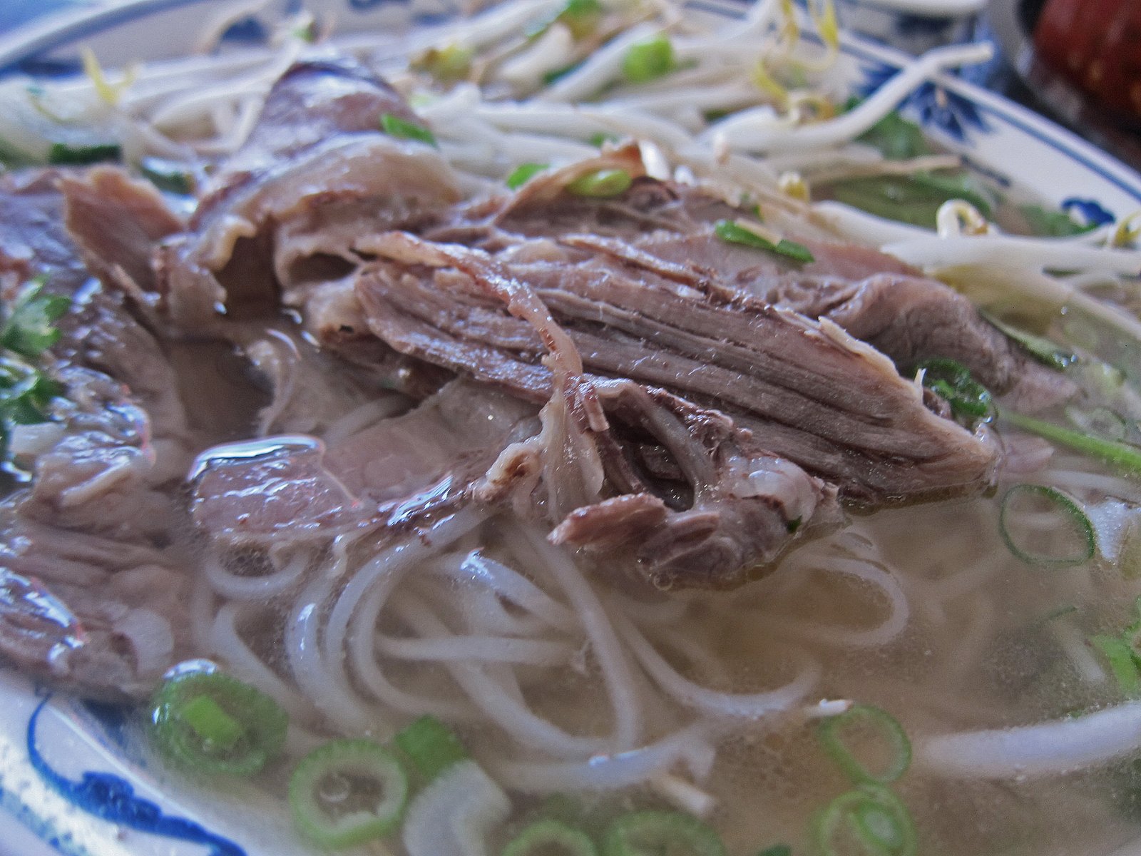 LuckyPhoRev03The broth looked nice and dark, not too salty on this visit; mild beef flavor, with hints of onion, a bit lighter in the anise than I recall. On my last couple of visits, they had gotten into the habit of overcooking their noodles; bot on this trip…it was nice, firm with a bit of stretch.
