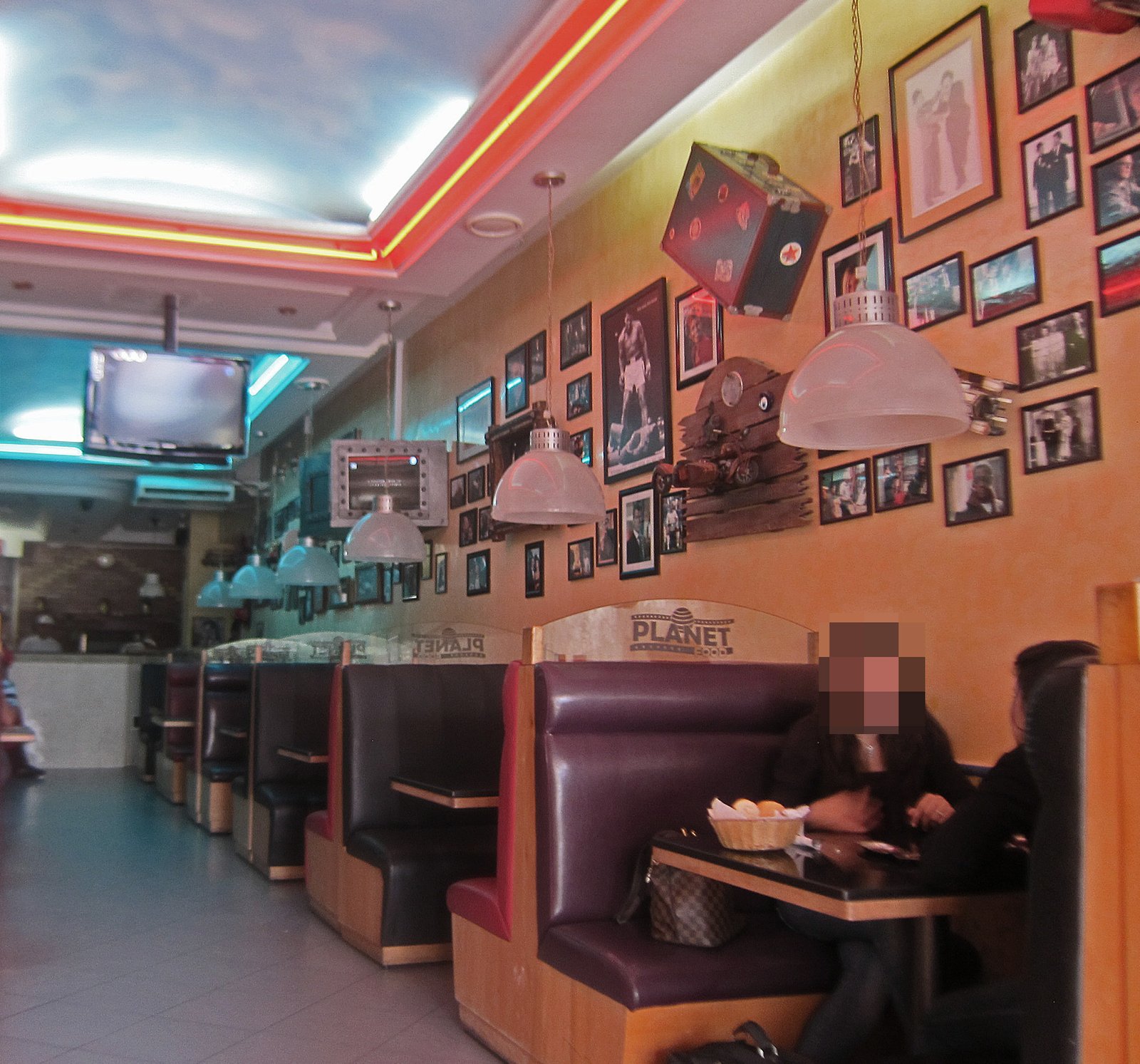 After which we stopped for lunch….Ben picked a restaurant called….Planet Food????? With US movies playing on the televisions above and photosof Ahh-nold, Angelina, Clint, Bruce, and a whole bunch of movie stars you'd know by just their first names, this was obviously a Planet Hollywood knock-off. So really, Plant Food??? Interesting thing was, the place was full of what seemed like local, or Tunisian tourists…not a European in site. Ben told us that all the tourists just stay in the all-inclusive resorts and places like this now mostly cater to Tunisians…..we were also told it's a favorite date-night place. Kinda cute, I guess….