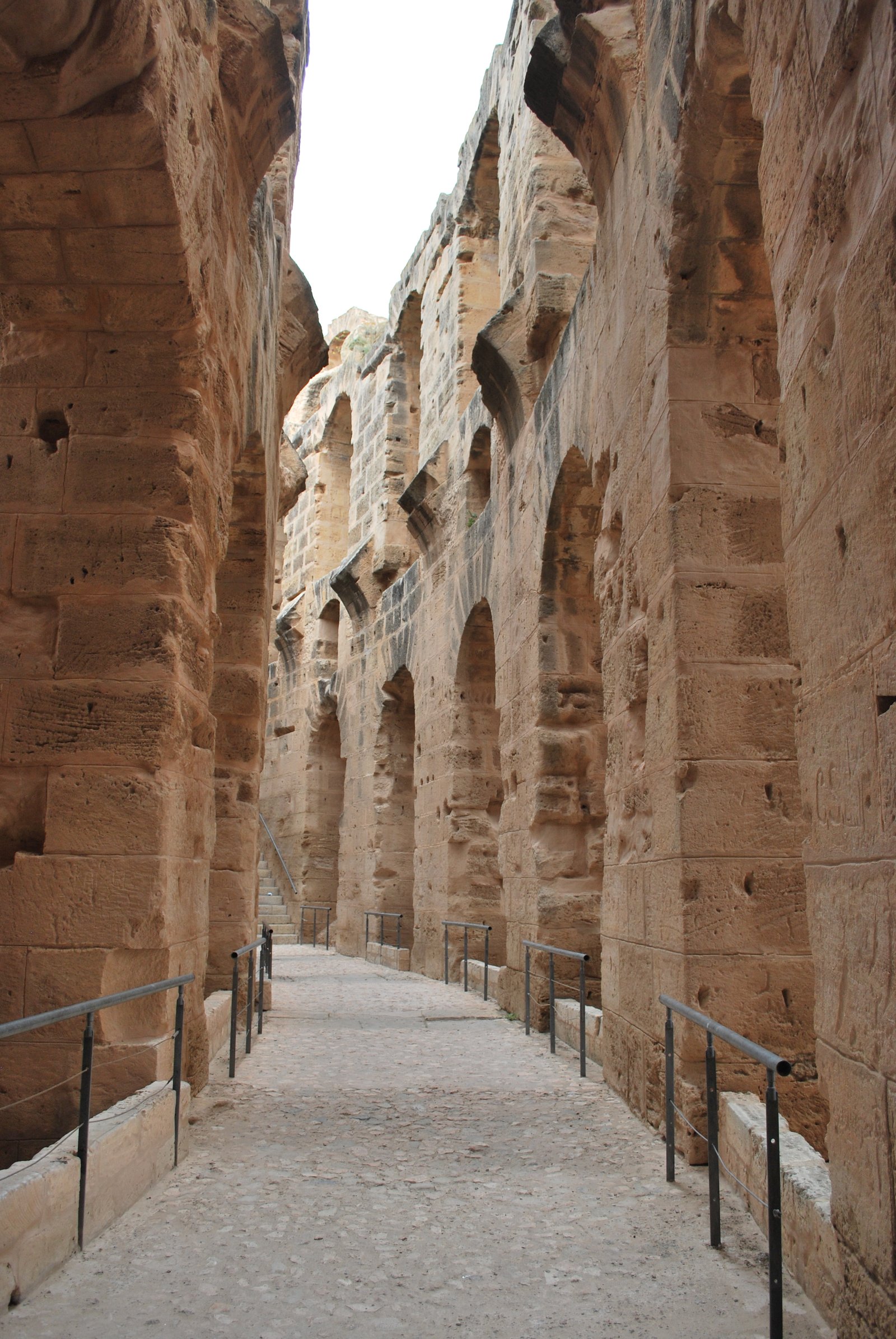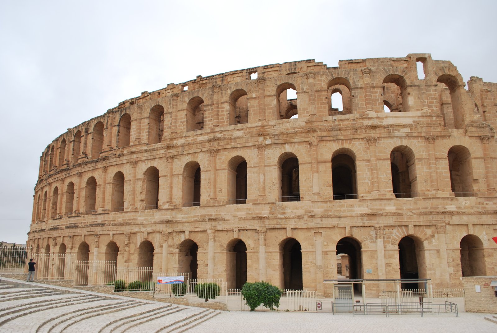 Much of the coliseum remains intact, though stones were removed in the 17th century to build the Great Mosque at Kairouan. It's the North side that looks the most impressive, the Ottomans shelled the South side in a rebellion.