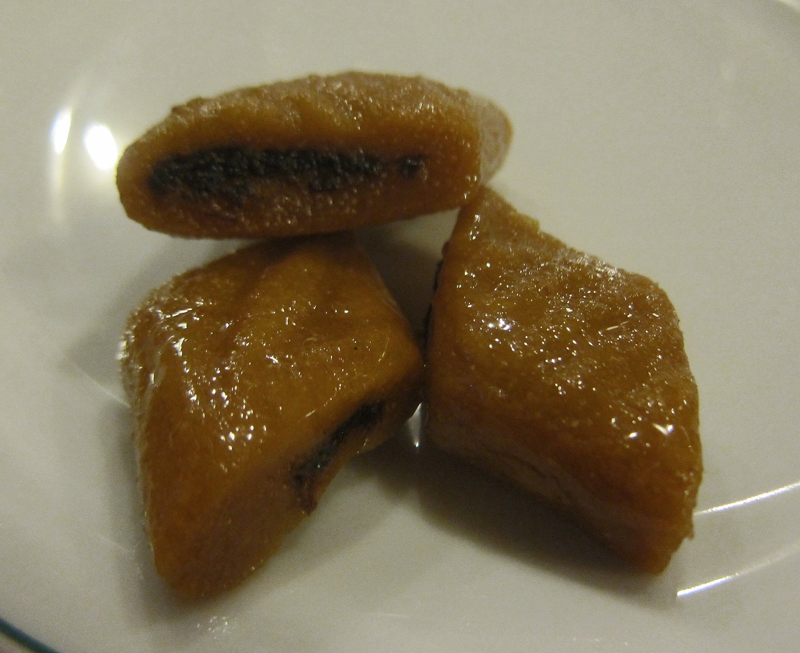 It's called Makroud, a pastry of fairly course semolina flour, filled with a date mixture, deep fried, then glazed with honey. It's pretty hefty for it's tiny size…..the Missus just loved this stuff and we'd go hunting for more later on……