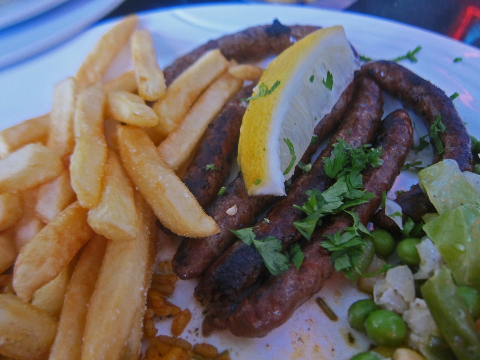 The menu was a mixed bag of stuff like pizza, which Tunisians claim is not Italian, but Berber in origin, so it belongs here…….kebabs, meat, and seafood.