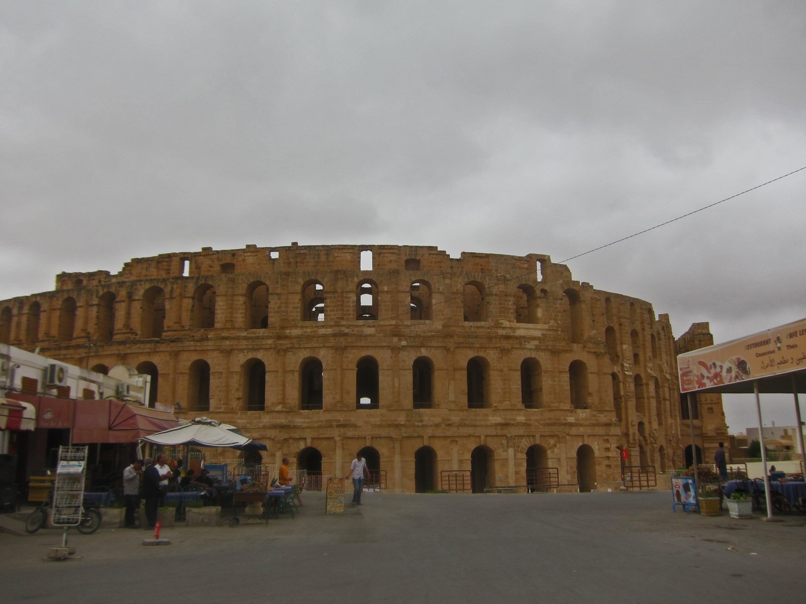 After Sousse, we headed South about 45 miles to the town of El-Djem with a population of about 18,000. Arriving in the little town of El Djem is pretty amazing. Why you ask? Well, towering above the little town is the thrid largest Roman Colosseum known.