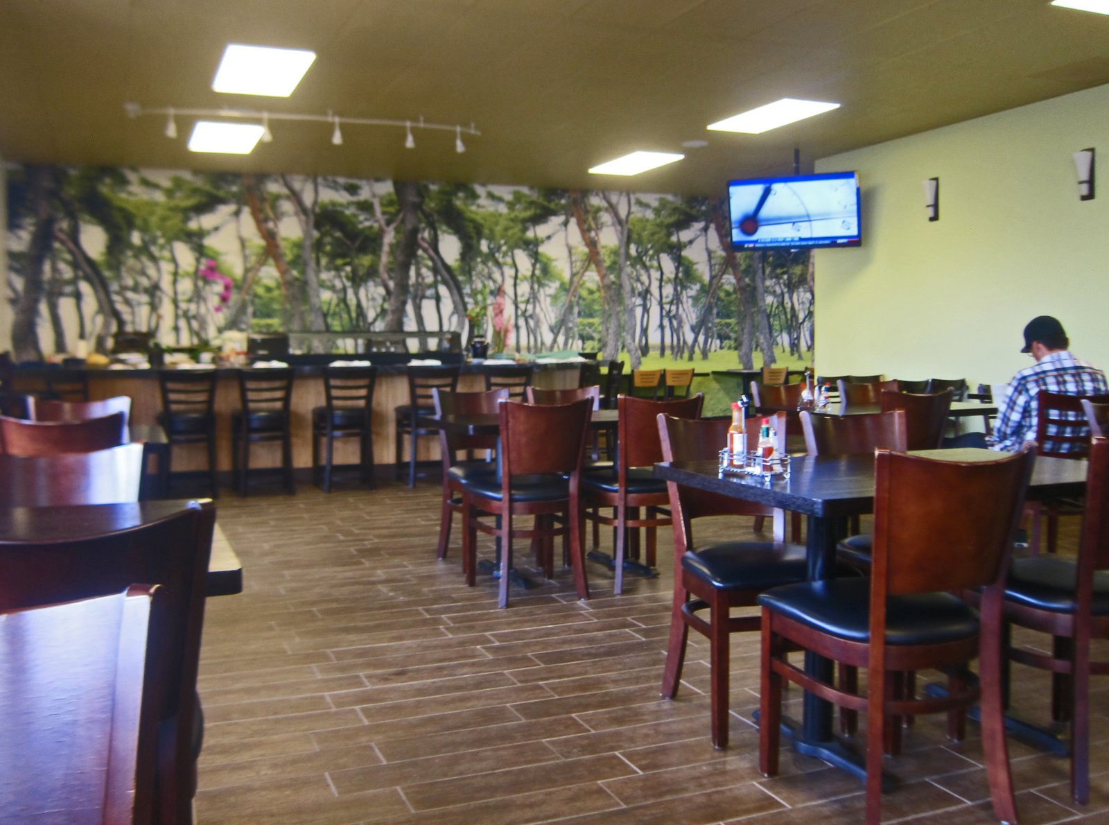 The dining room is pslit into two parts….I'm thinking this place can easily seat over a hundred easy….plus there's even outside seating. What's up with the forest scene……Moby Dick of the jungle…yikes…I don't even want to go there.