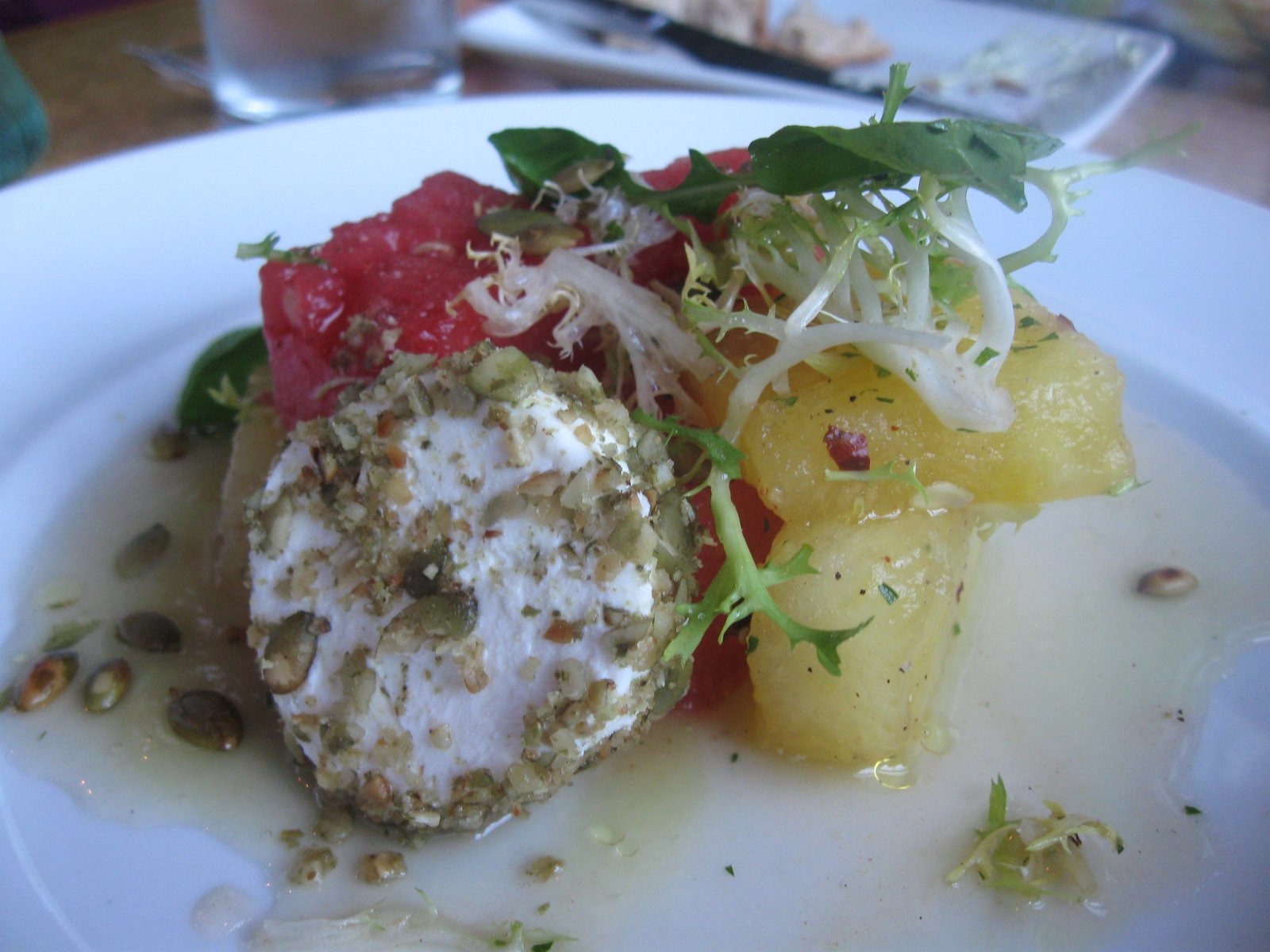 The first course to arrive was the watermelon and goat cheese salad ($10):