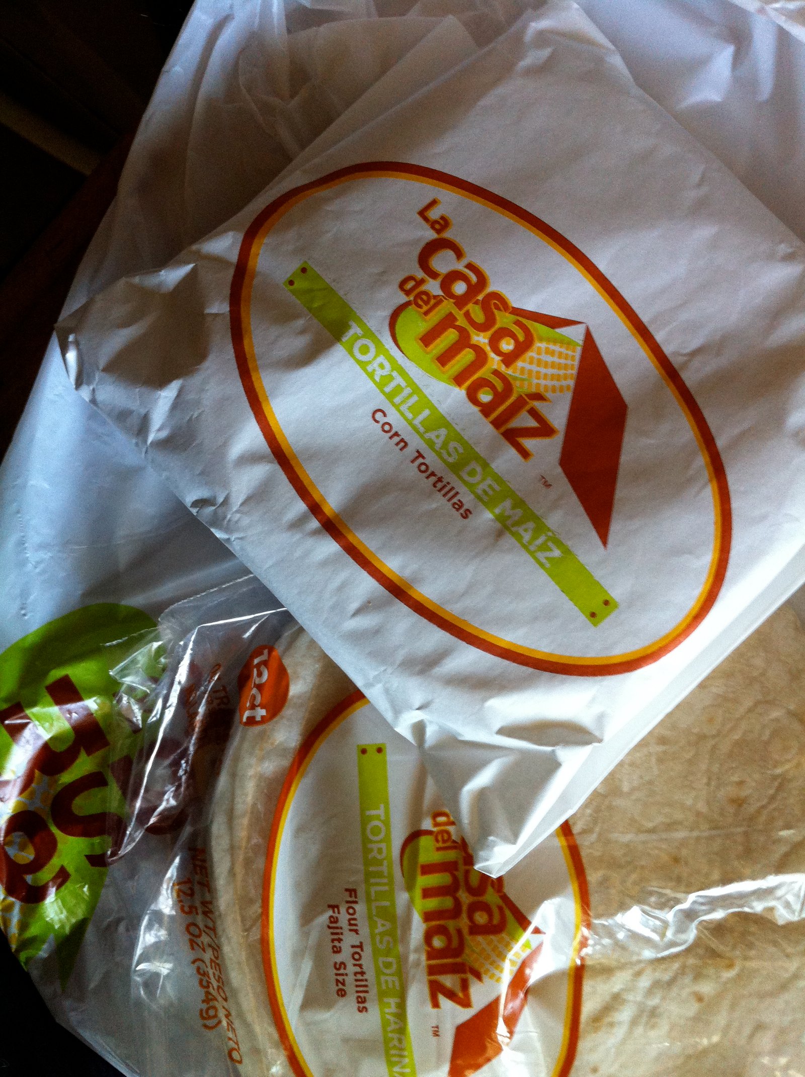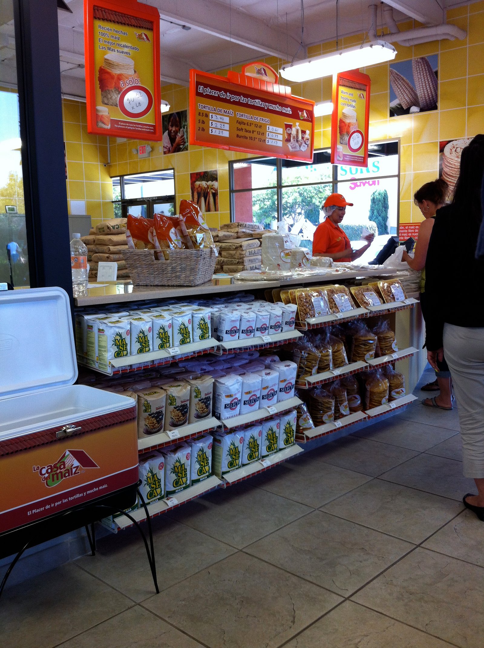 Welcome to the commenting side of our blog, caligirl. It’s OK to disagree and I do hear you. The corn tortillas from La Casa del Maiz are different than the ones from the local in-store tortillerias (where I do shop); they are thinner and not as ‘textured’ and don’t dry out and get hard if left open on the counter. I think they have a good corn flavor when warmed in a pan before eating. We got the salsa de rojo and it was too hot and needed to be doctored down to be enjoyed; along with the chips and even flour tortillas, the other items sold here make it more of a convenient one stop place. (It does smell like a regular tortilleria if you happen to be there when the men are making the tortillas in the morning. They are fastidious about cleaning up after finishing for the day.)
