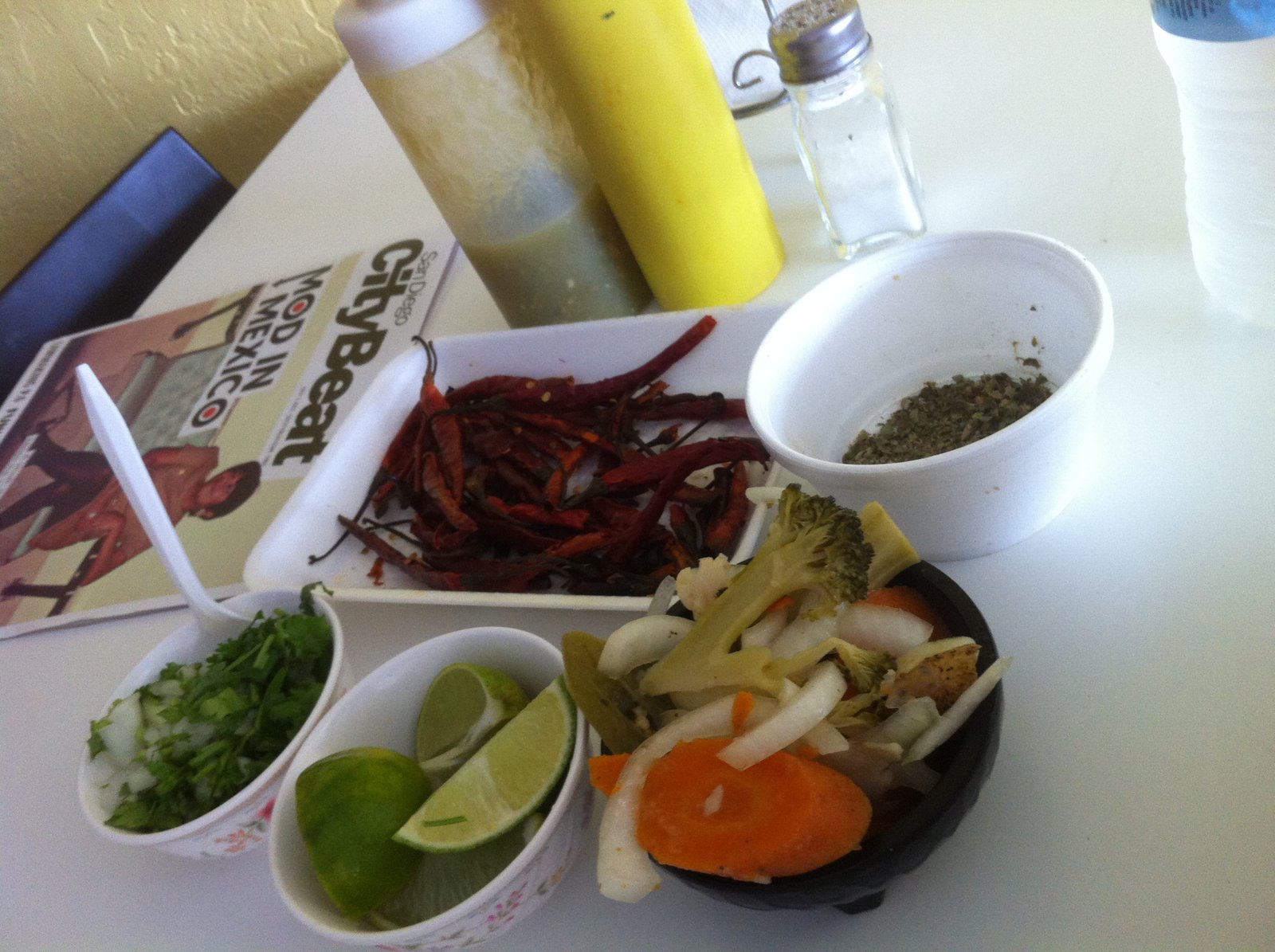 This was the recent meal- a carnitas taco ($2.39) and a cheese quesedila ($2.79)-filled with all white cheese and very good with the hot sauces offered.
