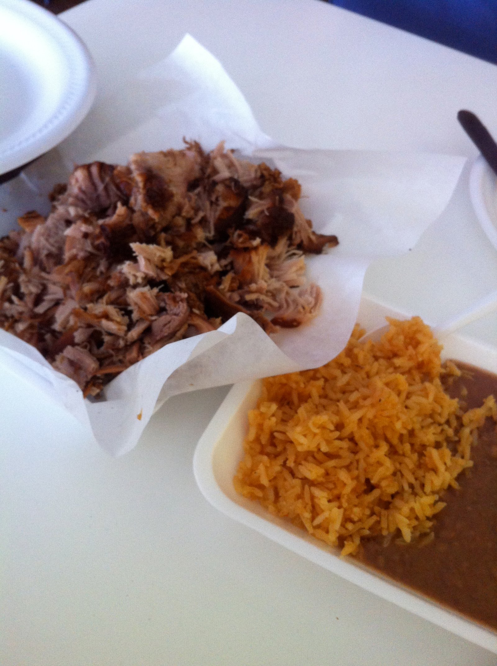 On our first visit we ordered one pound of carnitas ($10.99). It comes with rice, beans(cooked with lard and runny, in a good way) and a dozen corn tortillas.