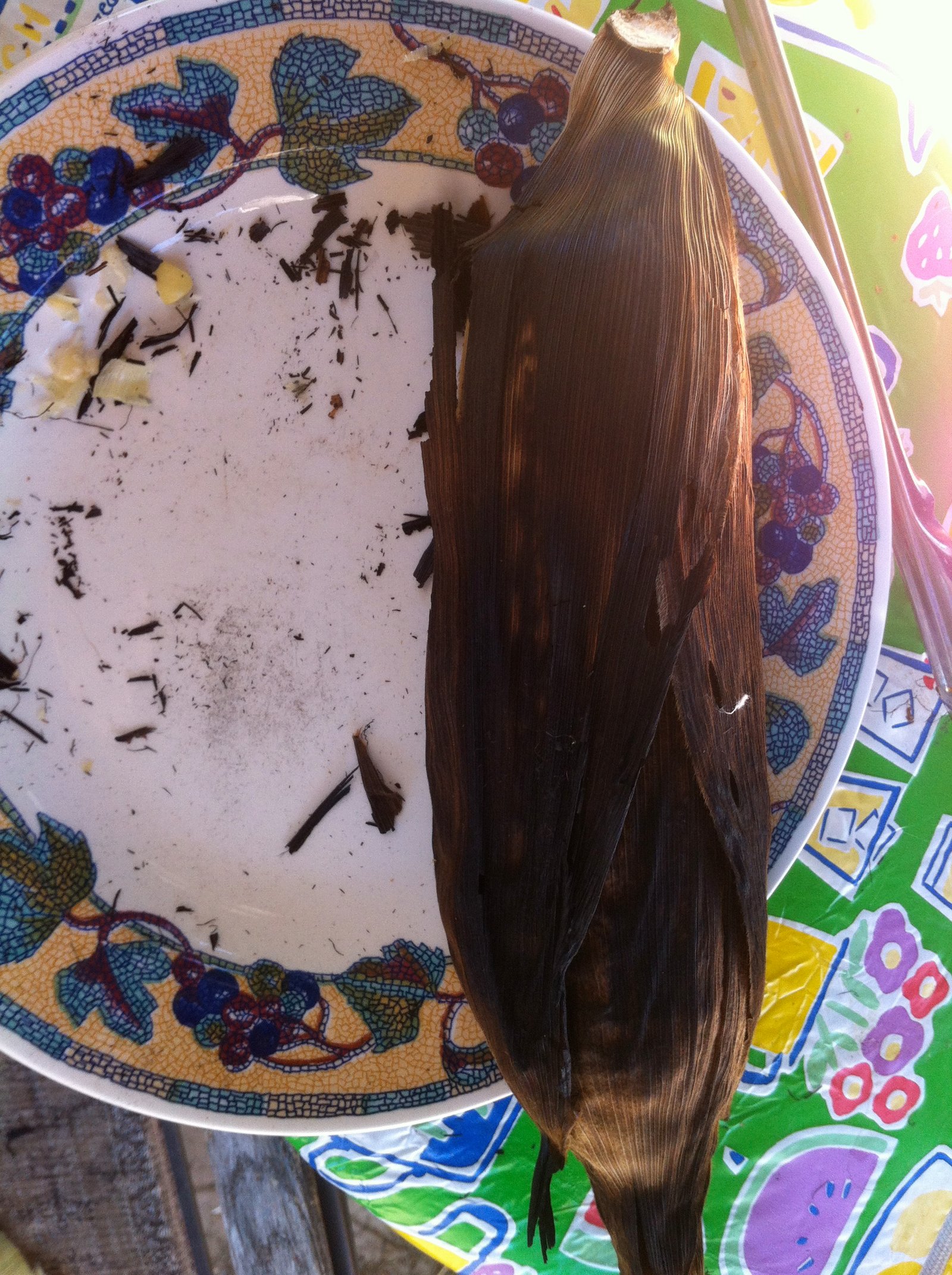 Clean, cooked corn! You can eat this as is, it's been steamed in the husk and if fresh, needs nothing added.