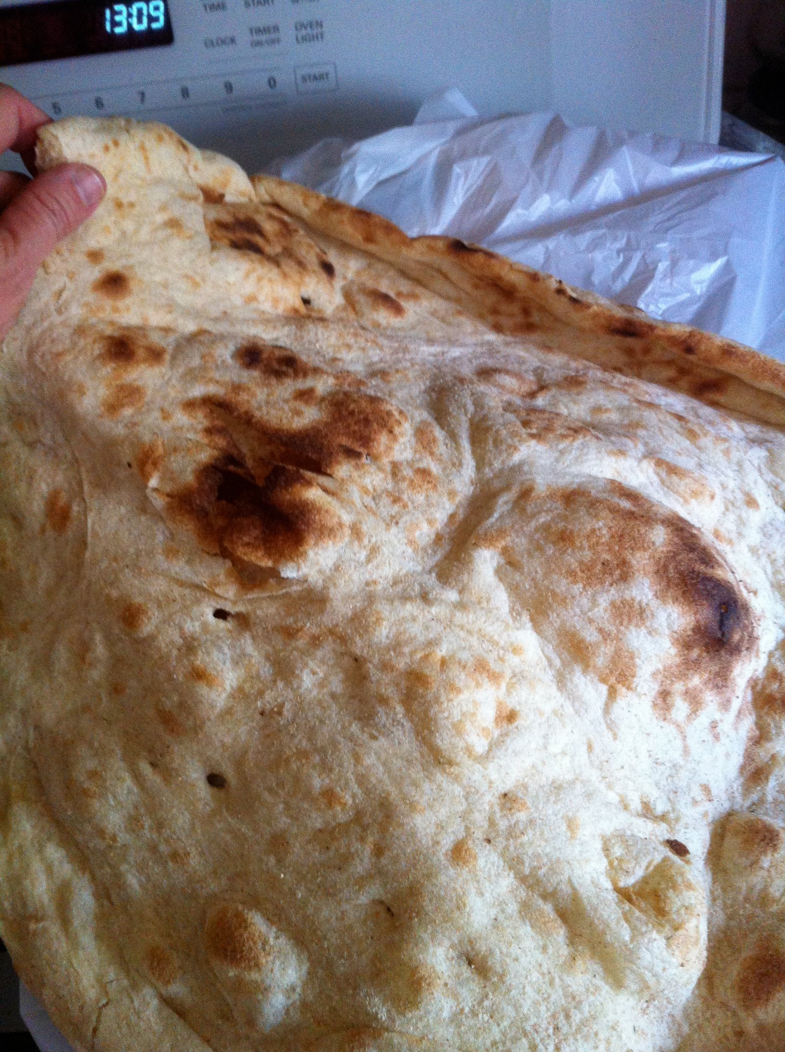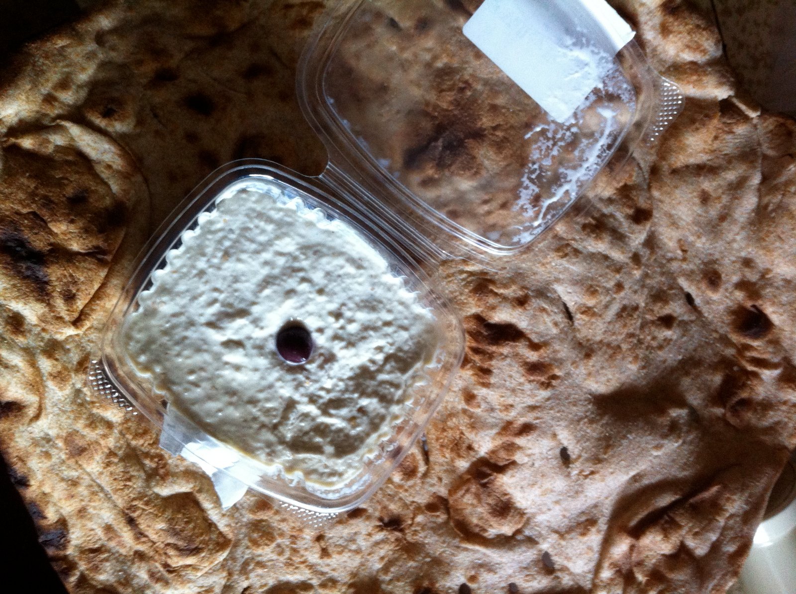 Here is a photo of the wheat bread with a small container of the house made eggplant dip- which also has that smoke flavor-showing a size comparison.