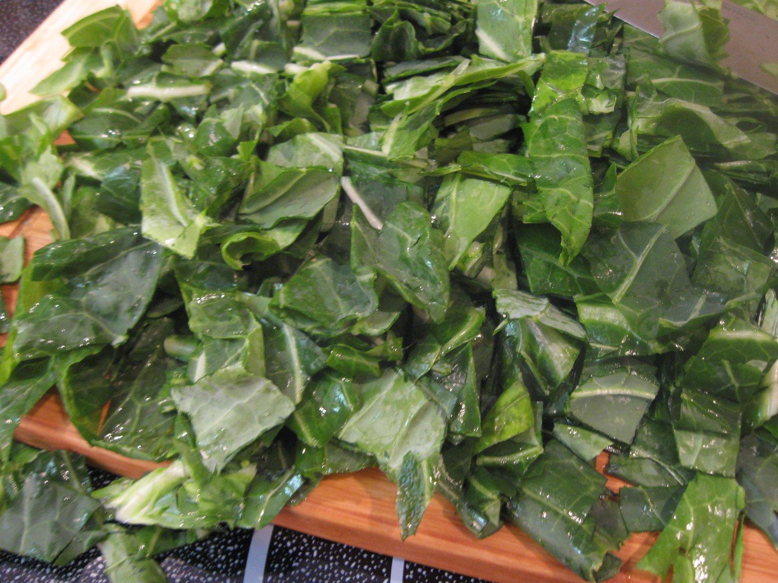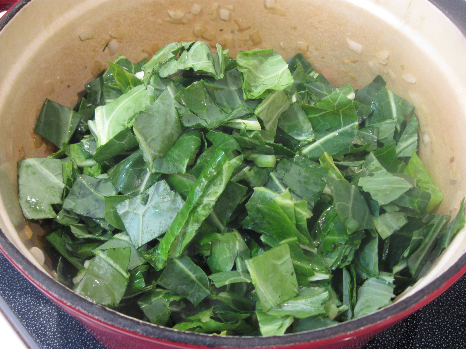 Half an onion would have been sufficient for two bunches of greens, but little extra onion doesn't hurt.