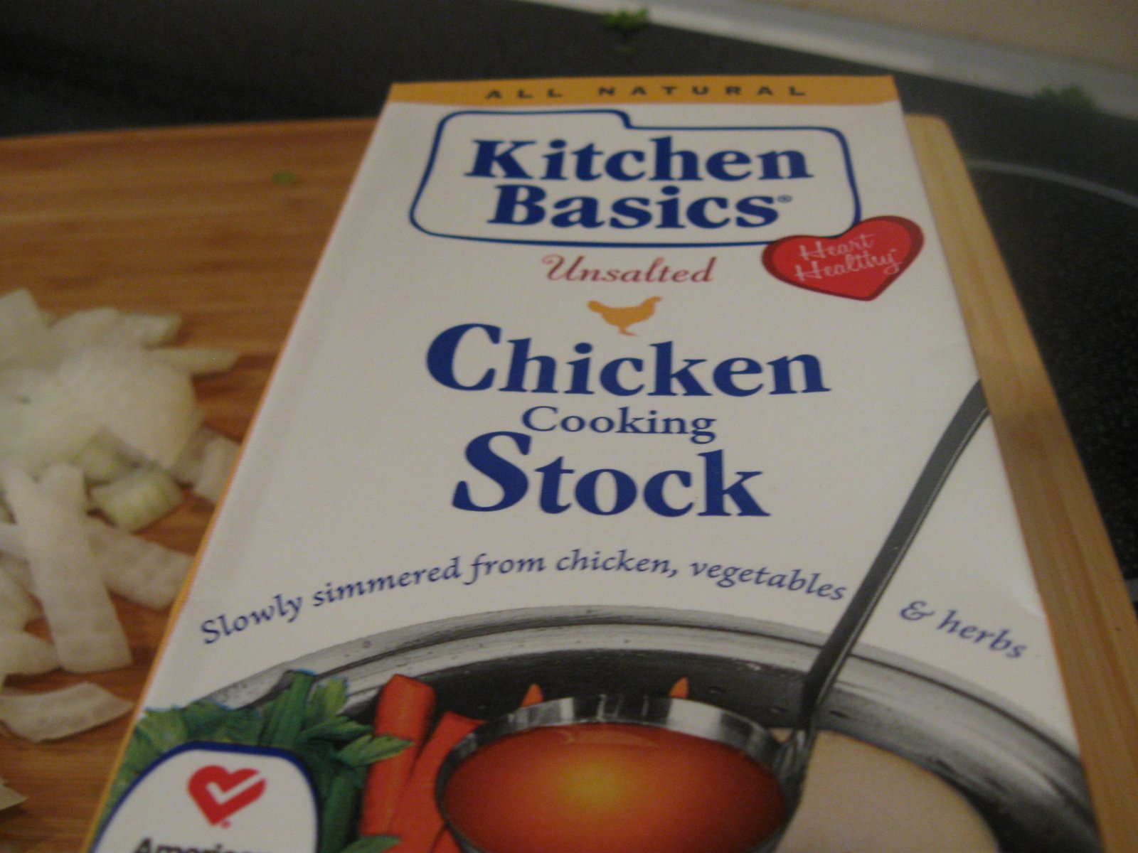 At this point, I always add some chicken stock. This particular time, I used Kitchen Basics unsalted broth since the sausages are salty themselves: