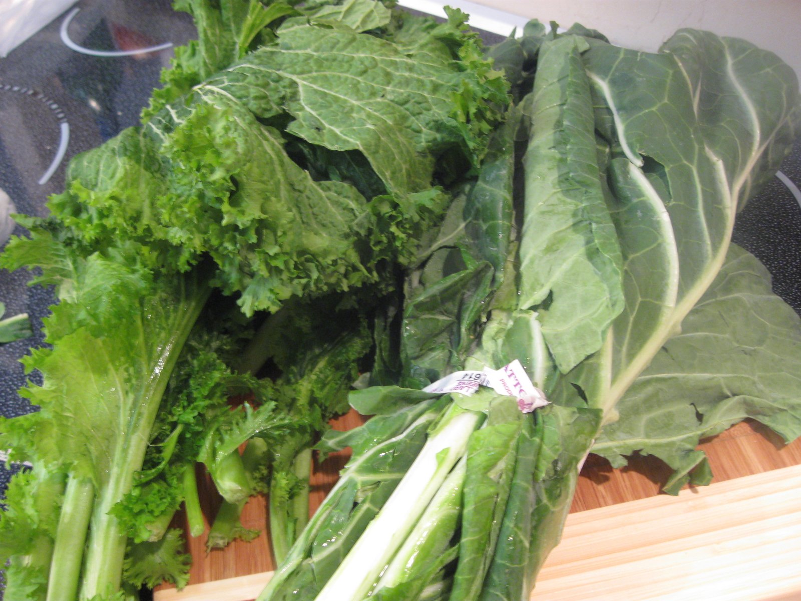 2 bunches greens (1 collard, 1 mustard)