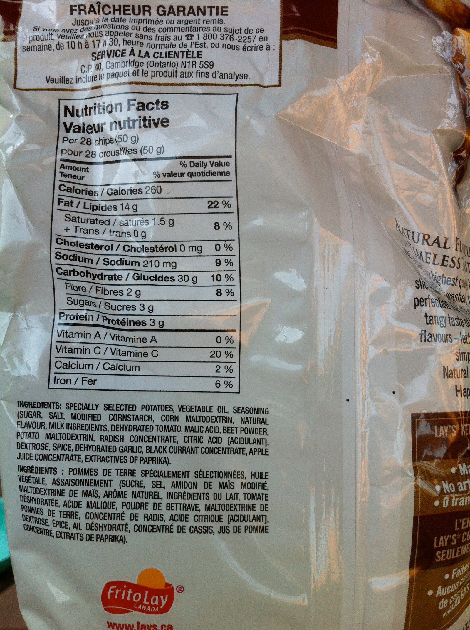 i was surprised by the ingredients for the kettle cooked ketchup chips. of all the different brands i bought (and there were many!), the Lay’s Kettle Cooked and the Pringles were my favorite. The Lay’s were so thick, crunchy and flavorful. The Pringles I liked because they are in a tube and packed really well! hope you see these chips and many others (I recommend President’s Choice – they have a multitude of flavors) for your upcoming Canada trip.
