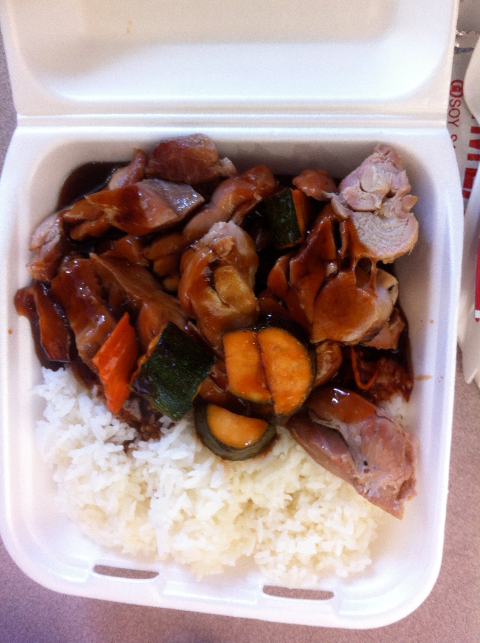 This was a Friday Special ($3.49) and was supposed to be beef stew, but I don't think that meat is beef. In any case, it was a very good sauce over nice (not mushy) vegetables (the sauce is not sweet and not too salty/does not need any condiment added).