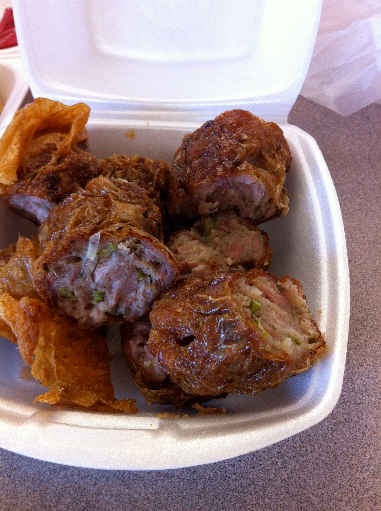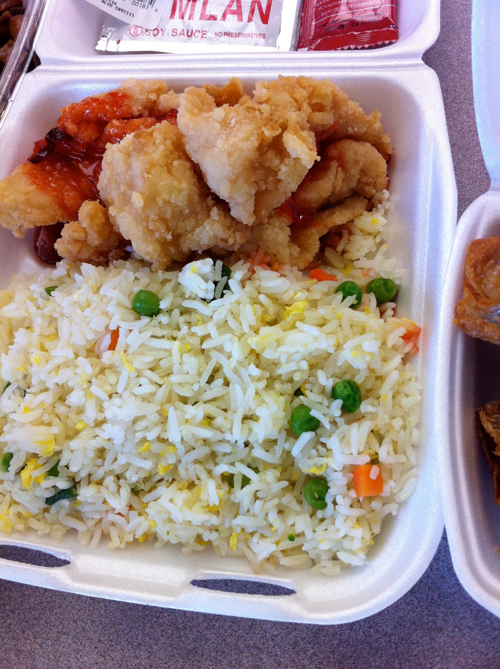 This was a Monday Special ($3.49) the fish filet with sauce (the sign says tomato sauce, but this was a sweet and sour sauce) with rice. Good and crisp. Turnover is very quick here and nothing from the steam trays is ever old or stale.