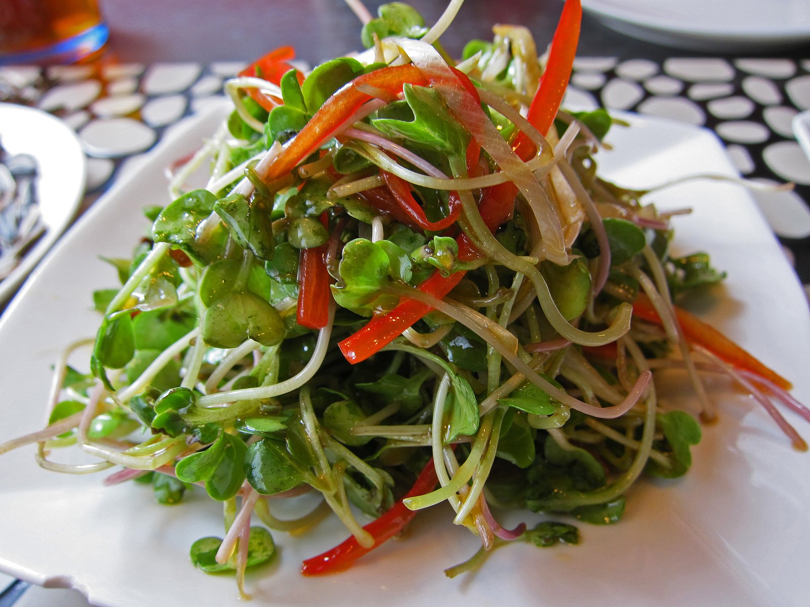 The radish sprout salad was much better, balancing the pungency with some acid.
