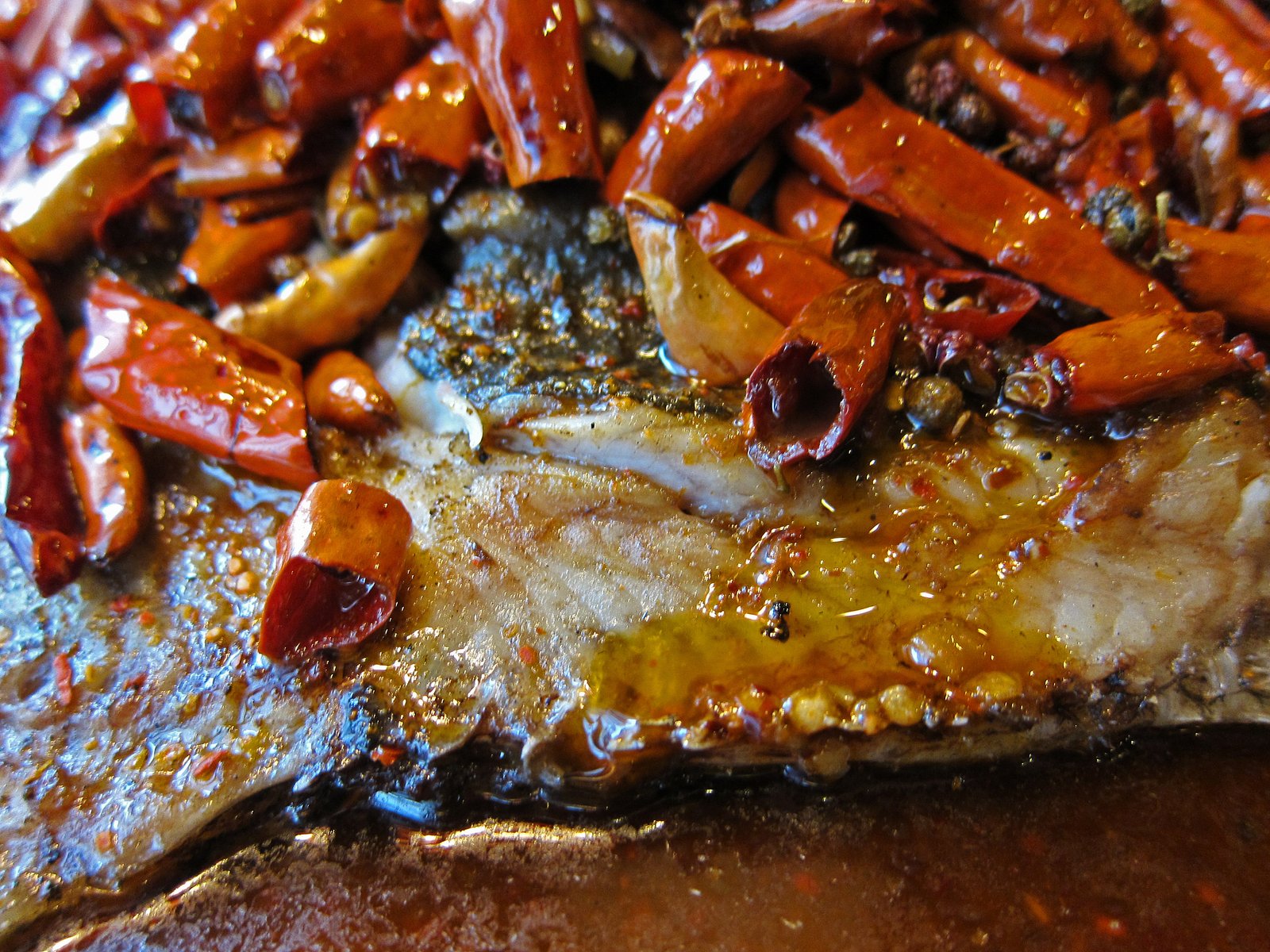 Then of course, was the Wushan Fish. This Sichuan style of cooking fish is really popular in Beijing. The fish looks grilled, but it is really marinated, fried, then roasted. We chose the "No 1 Hot and Spicy" flavor and sole as our fish.
