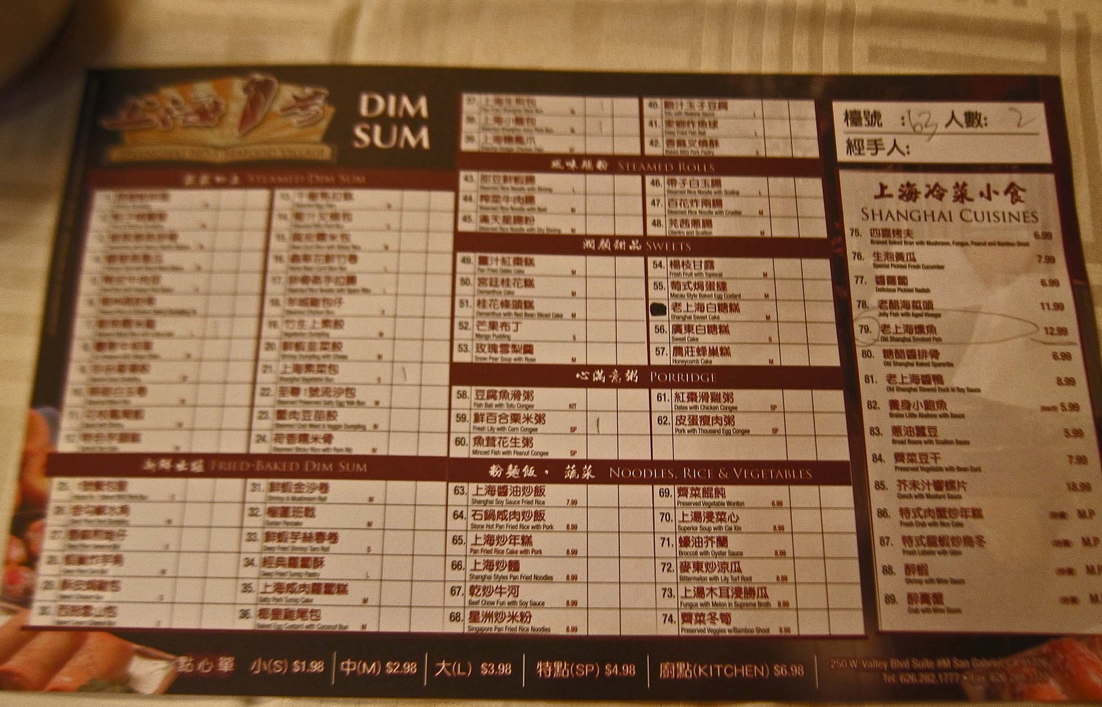First the folds were hard and gummy, not made well. The flavor of the soup was on the mild side and the filling was hard….much too hard for Xiao Long Bao. This would probably do in San Diego, but not in a Shanghai style restaurant in the SGV.