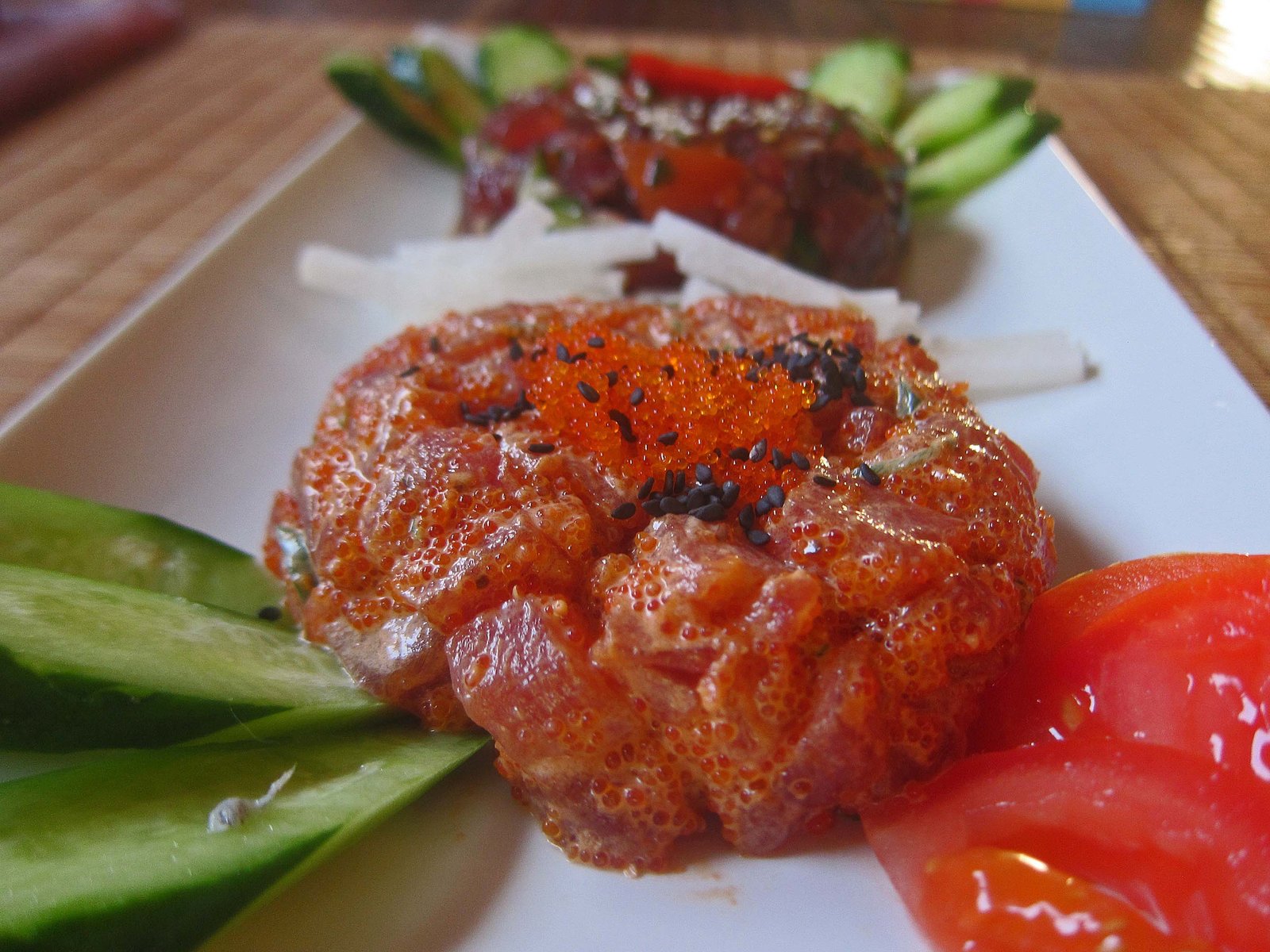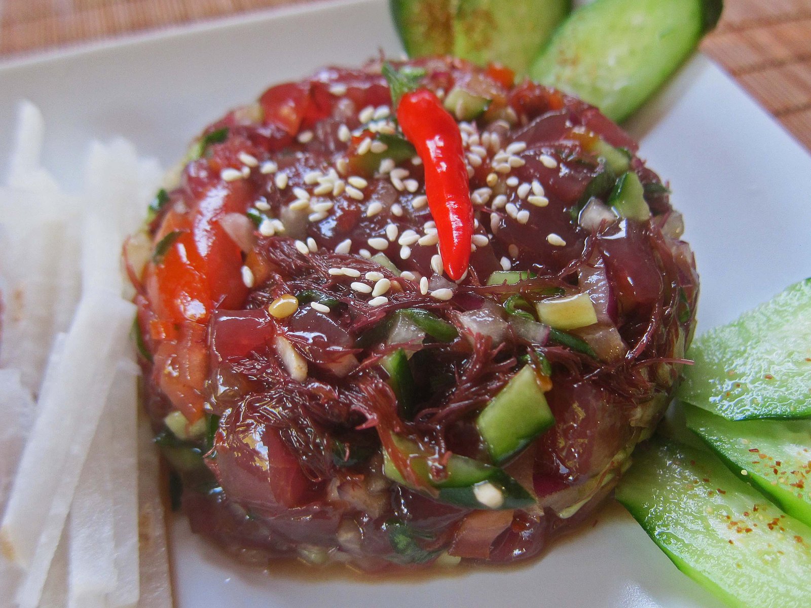 JohnL gave me some limu (thanks John!) from the farmer's market and I was happy to see some decent maguro at Marukai here in San Diego for a change. Of course, the Missus wanted the Spicy Tuna Poke, so I made poke two ways….