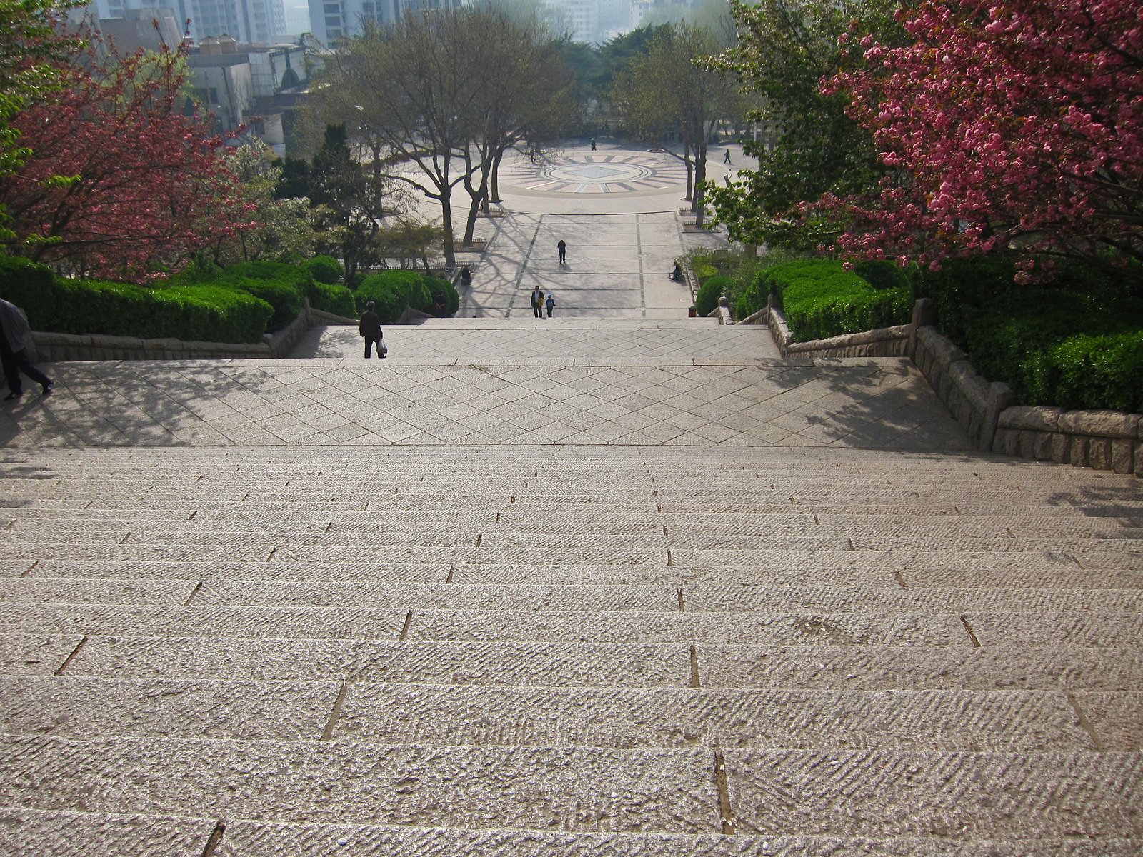 So while the cab driver took a smoke break, the Missus climbed up a median and took Her photos.