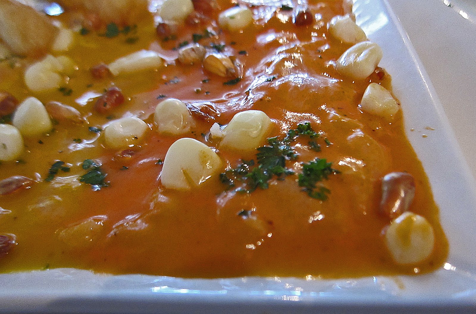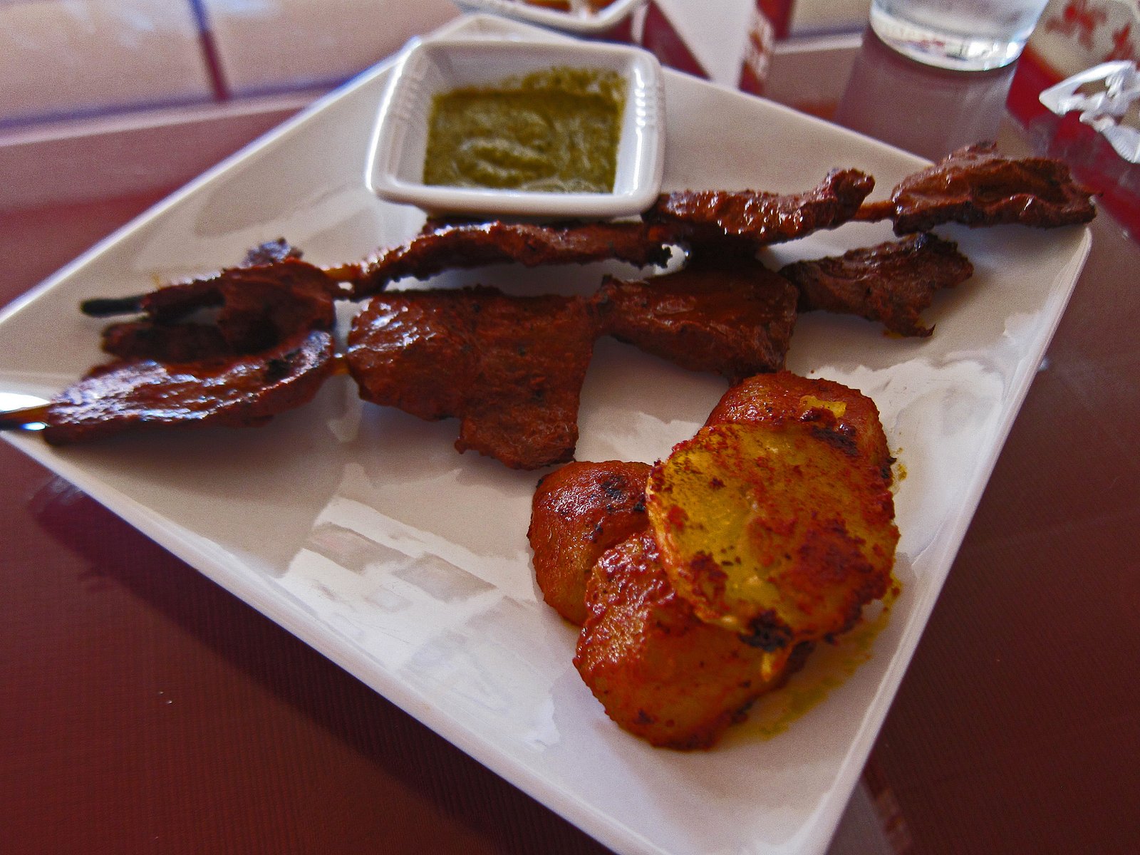 Nicely flavored, the beef heart retained a bit of "squeak", but was still tender enough to enjoy. Nice color, probably due to the use achiote and perhaps a few chilies. I wish they'd be a bit more creative with the varieties of potatoes.