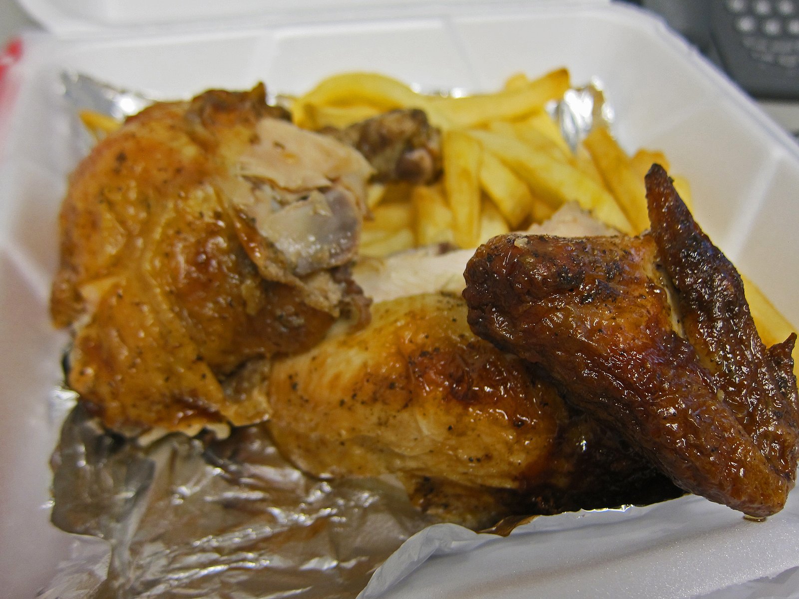 Back in 2010 when I did my big chicken comparison, I thought Nazca Grill was "getting better all the time". Flash-forward to fall of 2012 and all I can say is, "the chicken has regressed". This was salty and I'm not sure if they finish it with hardwood anymore. On the other hand, it was nice and moist, but just not anything special, especially for twelve bucks for a half chicken meal.