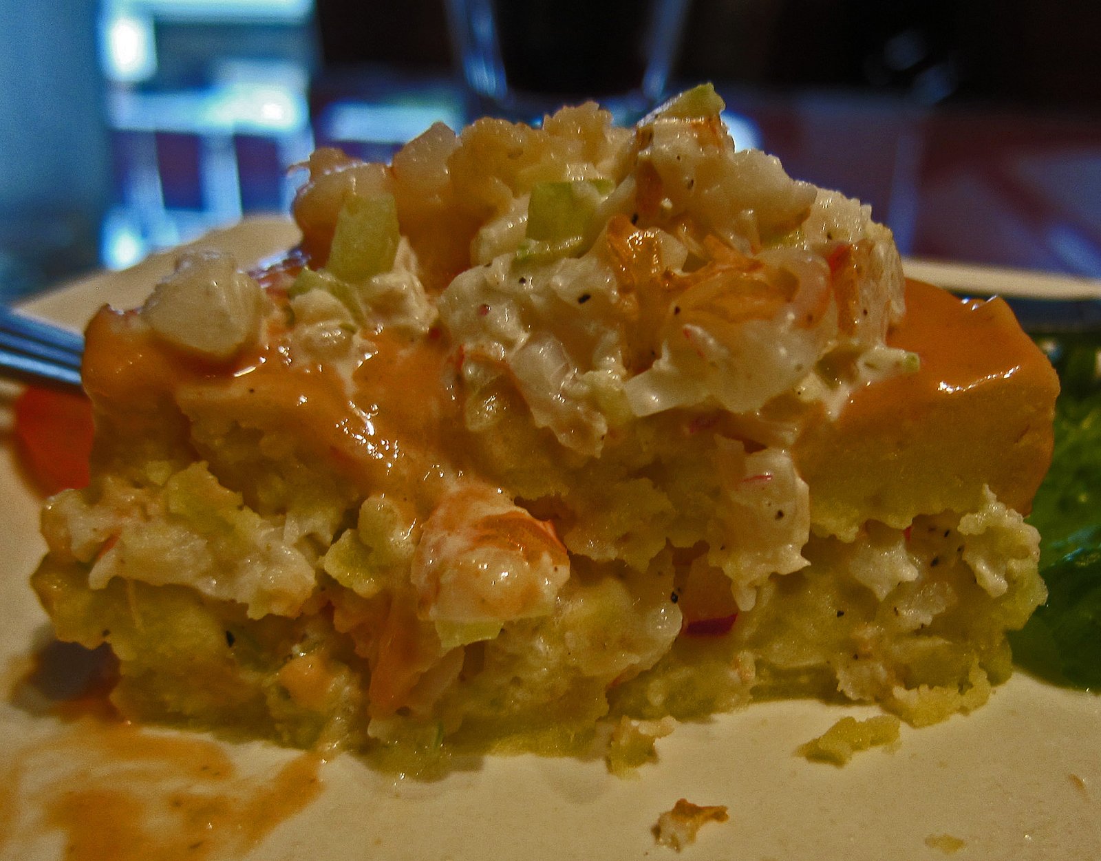 The causa here used to look like it was cut from a baking pan, but is now presented in a much more attractive circle. It's not over-dressed with mayonnaise, though the aji rocoto sauce is on the bitter side. The shrimp also seemed mushy and watery. This was not quite as good as what I had on previous visits.