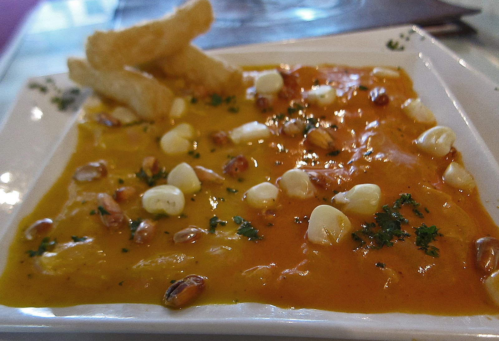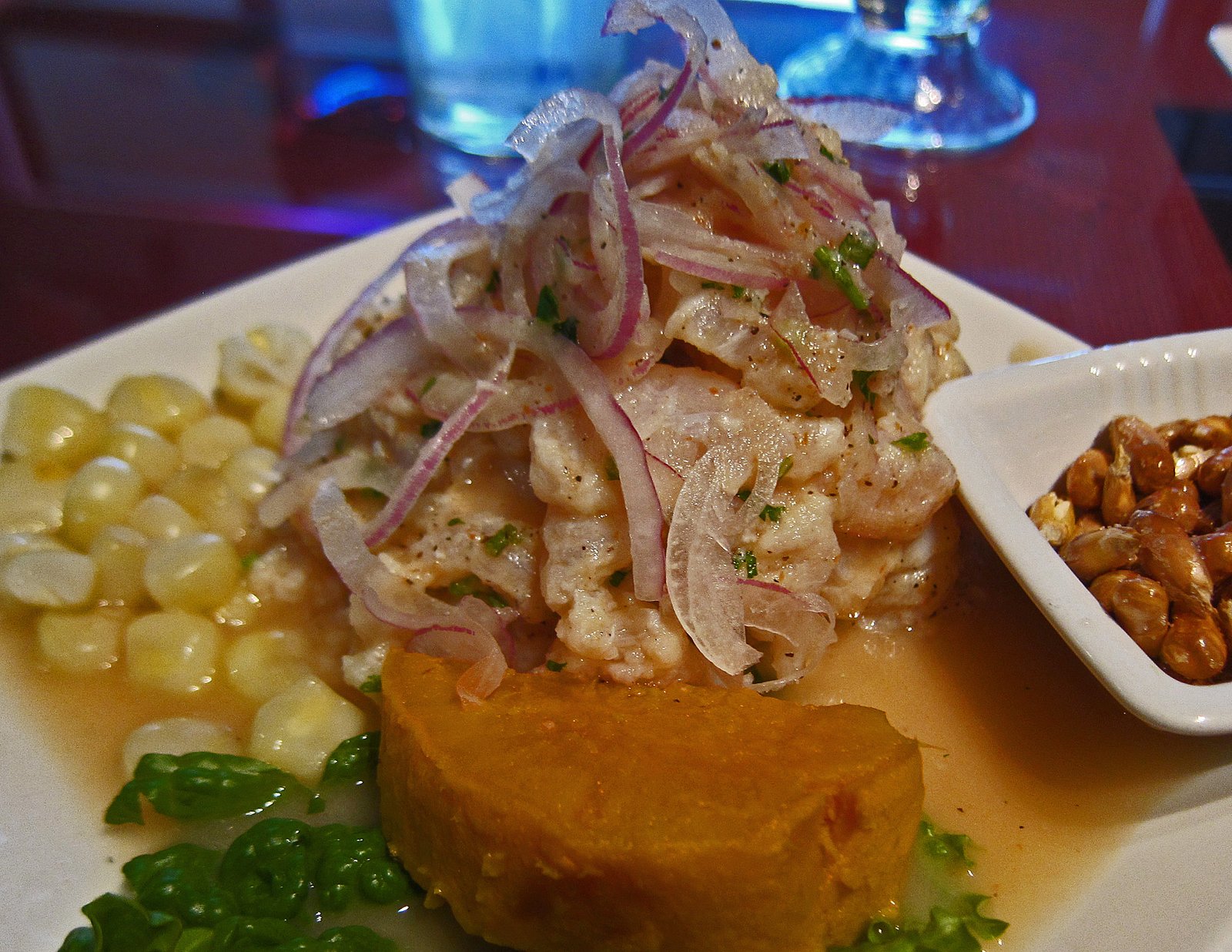 No complaints about the nice, thinly sliced fish. I ended up pouring what canchita (roasted corn kernels) into the aji amarilla side and eating up as much as I could.