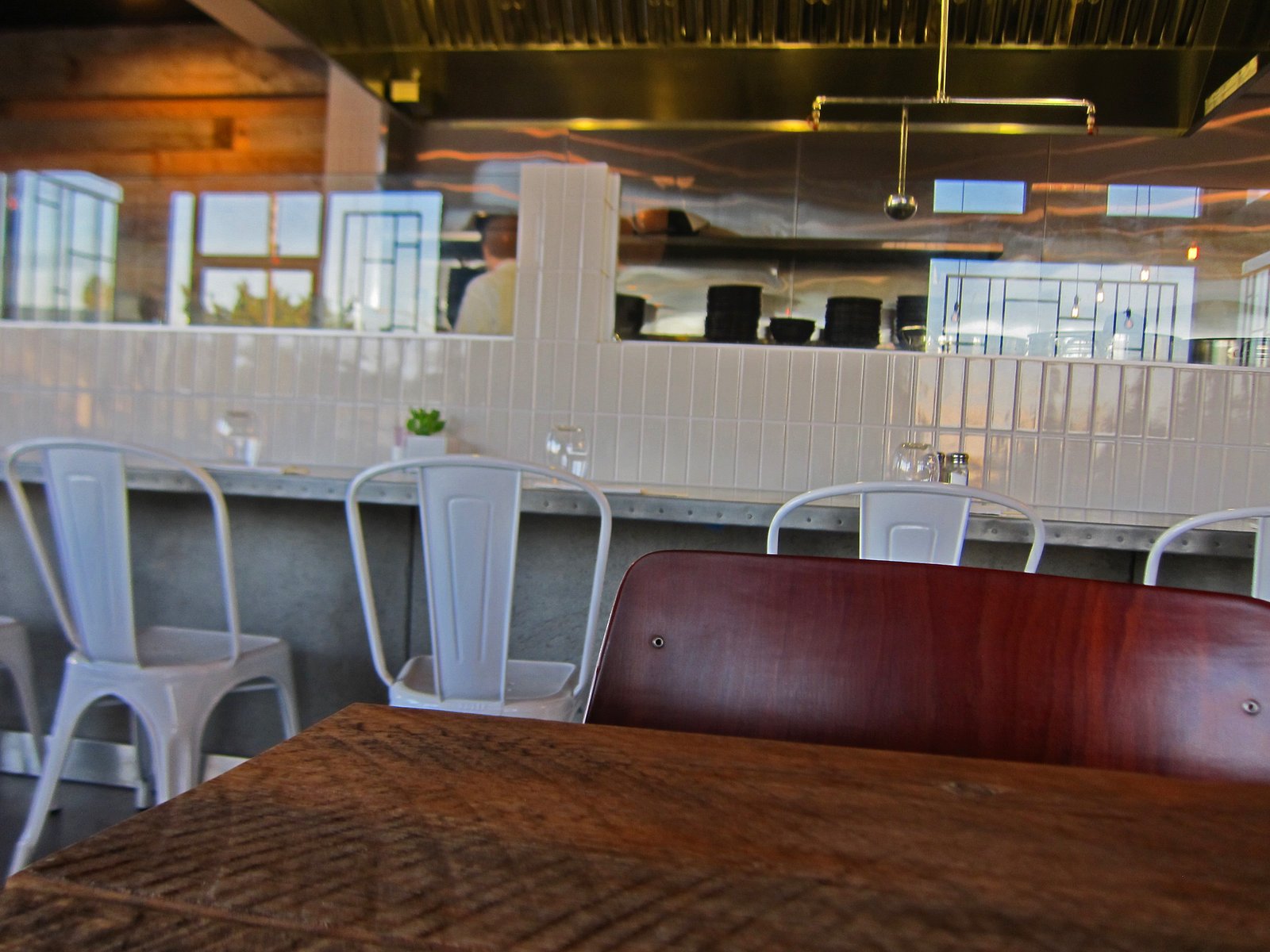 At first glance I liked the look of the place, nice woods, the somewhat rustic cafe look. But after sitting at the counter my opinion changed. The seats seemed too low, making the counter quite high, which felt strange. Sort of the "little kid at the soda fountain" feeling.