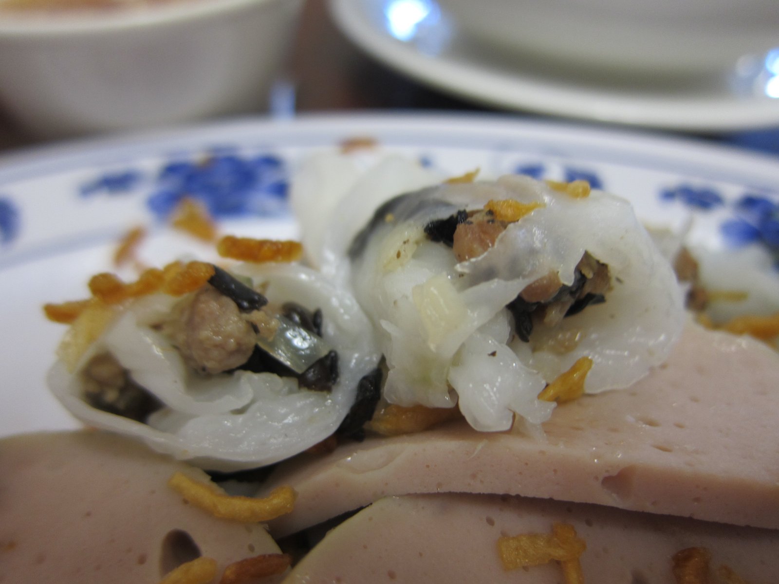 Having arrived ravenous, I ordered the Bun Moc ($7) and then attempted to order the Banh Cuon, which isn't on the menu to the very sweet woman serving me. I say attempted because it took me four tries to get the pronunciation even close to where she could understand me. Yet she patiently stood there and helped me work this through.