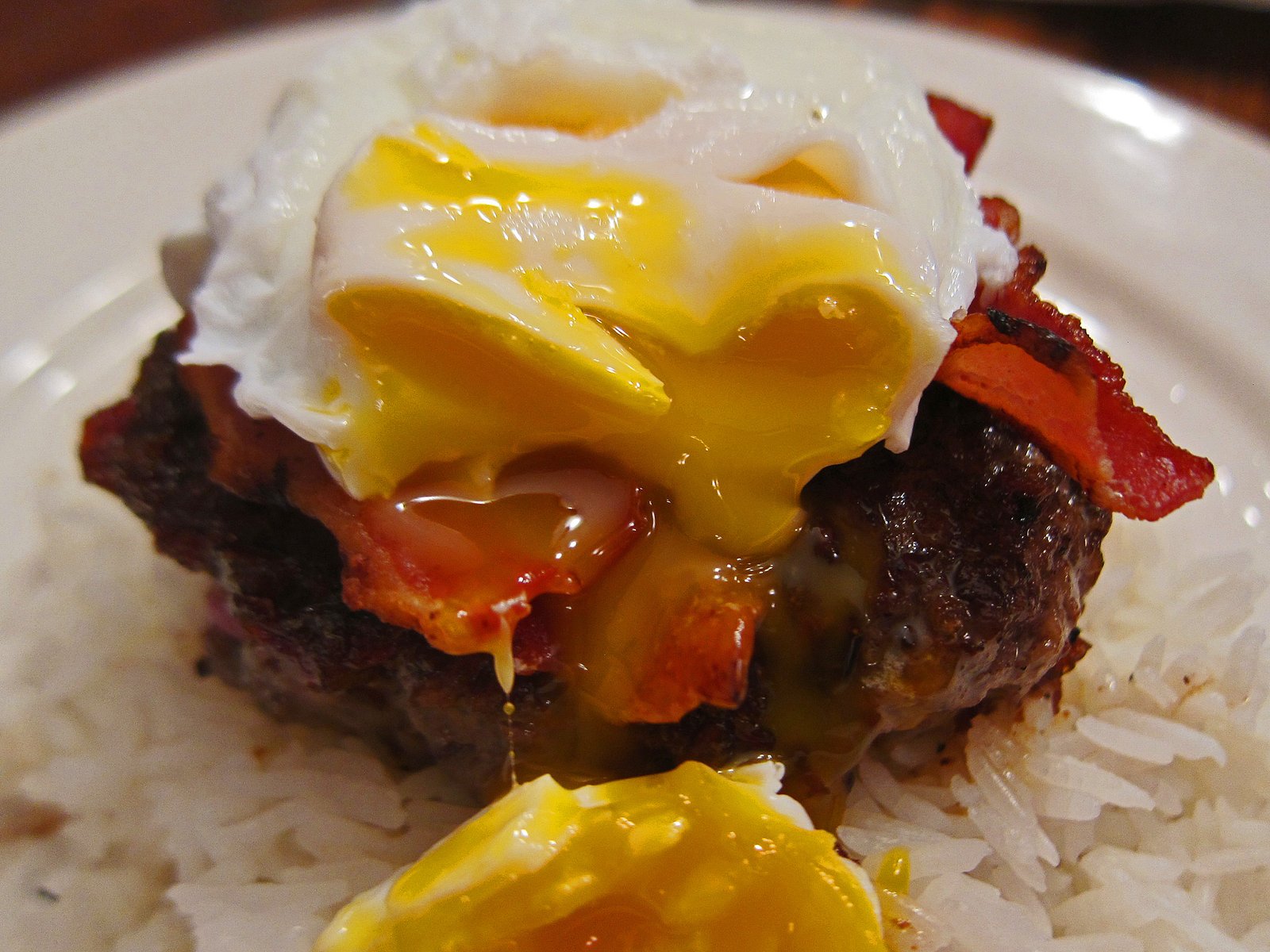 We stopped by Seisel's and while I was buying calves liver for Da' Boyz, the Missus brought me a package from Seisel's "Frozen Protein Zoo". This time it was ostrich….. this one was going to be fairly straight forward, the Missus wanted simple pan fried "burgers" to have with bacon and poached eggs. I told Her that my one previous experience with Ostrich was that it was D-R-Y. But the Missus doesn't mind dry….so I went ahead and made some ostrich patties. Red onions, a bit of panko, roasted garlic olive oil, granulated garlic, fresh ground pepper, and sea salt. I pan fried these in bacon fat, trying to save every little bit of moisture. I turned out to be dead wrong….man this was moist and tender. And the Missus loved it! I had mine on rice, loco moco style with a light pan sauce……man, this was really good.