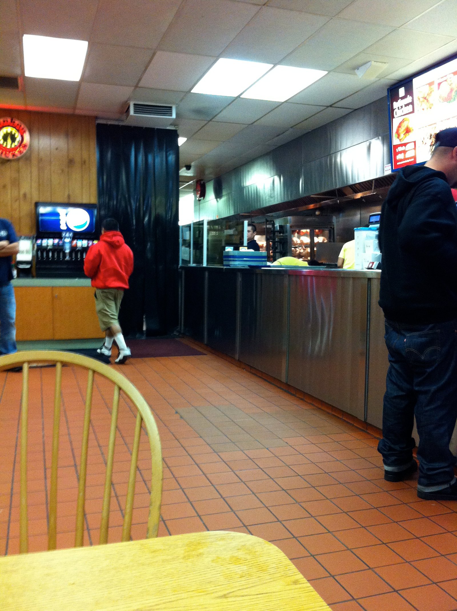 Large inside, nice and clean. A pretty simple menu, easy ordering and fast service. You can see many chickens on the rotisseries to the top right. There were also rotisserie spits with shawerma and tarna.