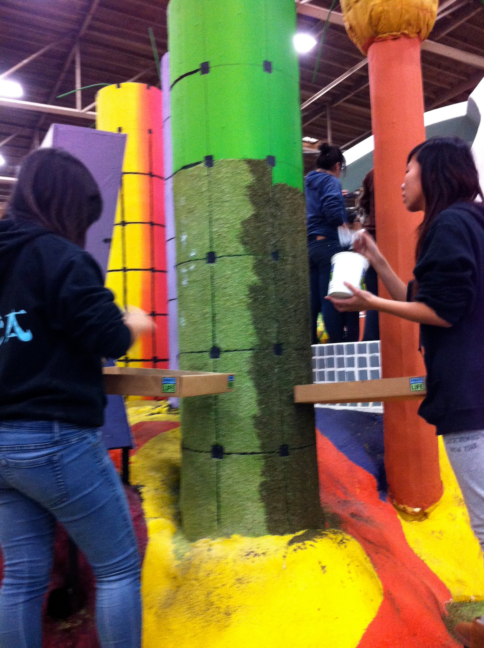 The Lions Club had a good number of volunteers, steadily working on their detailed float.
