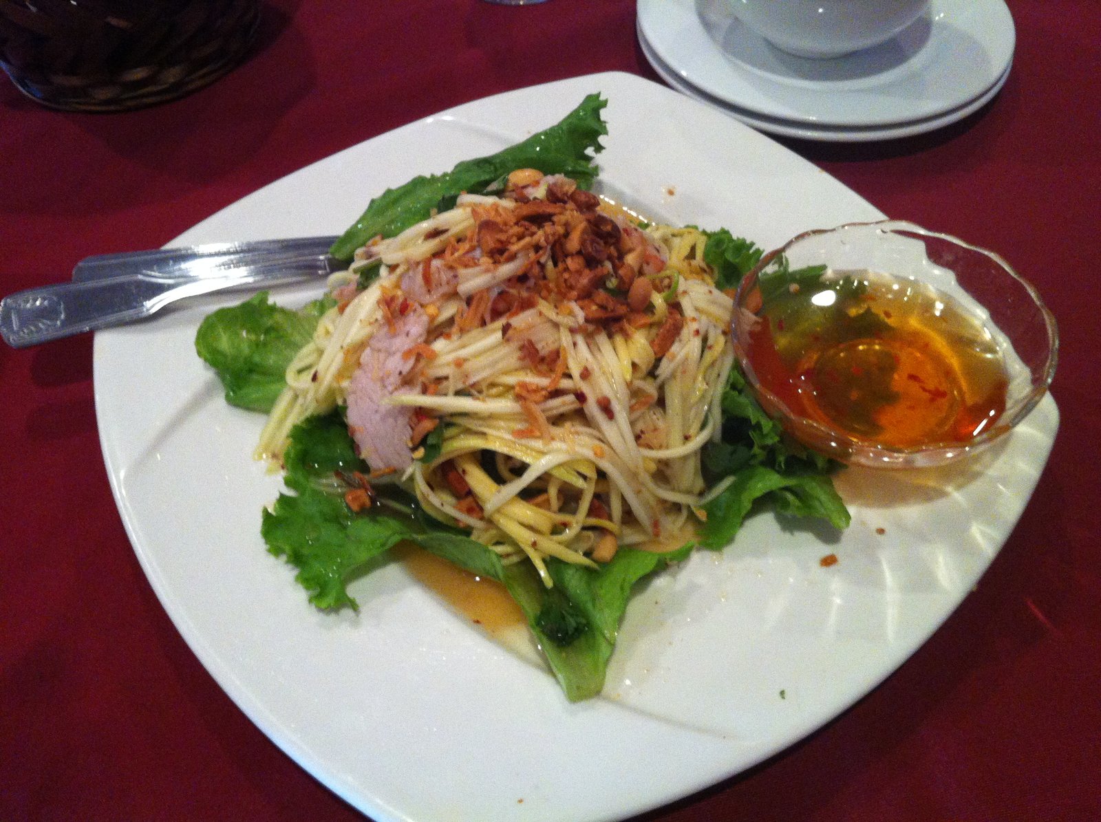 Of course, I returned, with The Mister, for lunch. We started out with the papaya salad. Fresh, crispy, able to taste all the flavors which were perfectly melded together. Just enough heat for us.