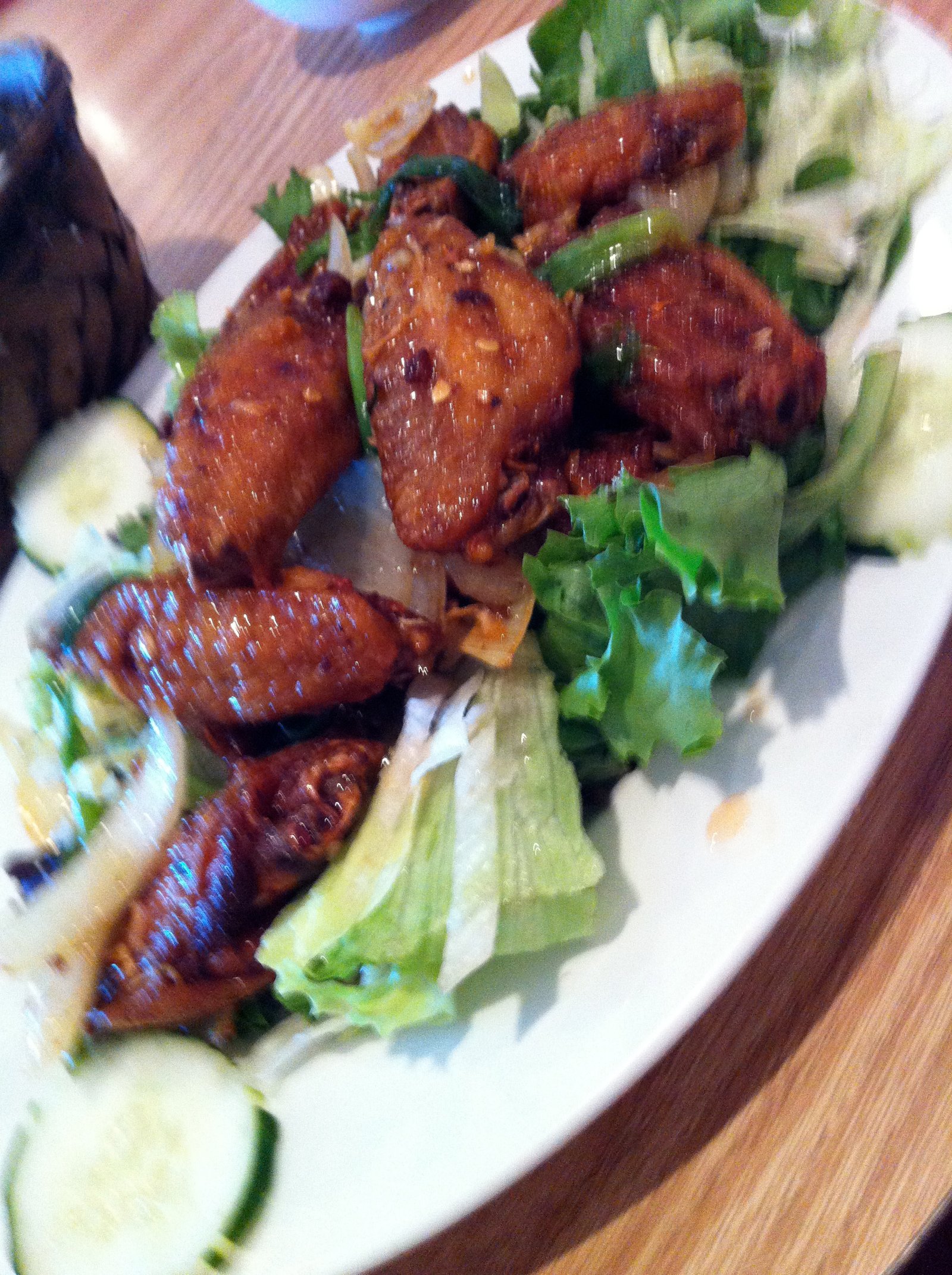 We chose to share the fish sauce chicken wings, because …well… we just wanted to try one flavor and The Mister asked me to choose. My choice was savory. Perfectly crispy wings, perfectly sauced and served with a salt-pepper-lime juice for dipping.
